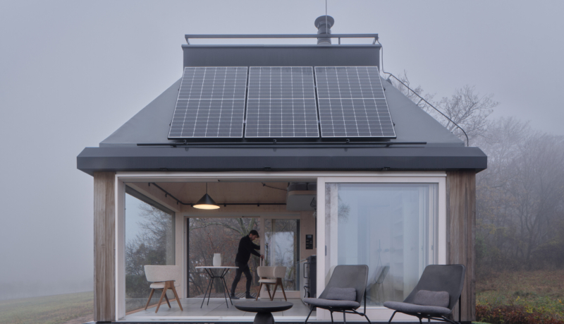 Ark-Shelter and Archekta’s 20 m² off-grid retreat at the edge of the Zlatý Roh vineyards above Devín Castle compresses full domestic function into a single modular volume, operating year-round without connection to mains services while opening almost entirely to the surrounding landscape.