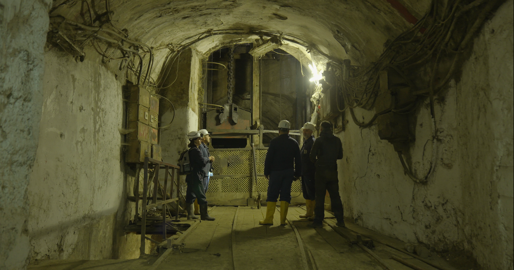 Miners waiting for the lift, taken on a field trip, 2025. Credit: Agon Mehmeti