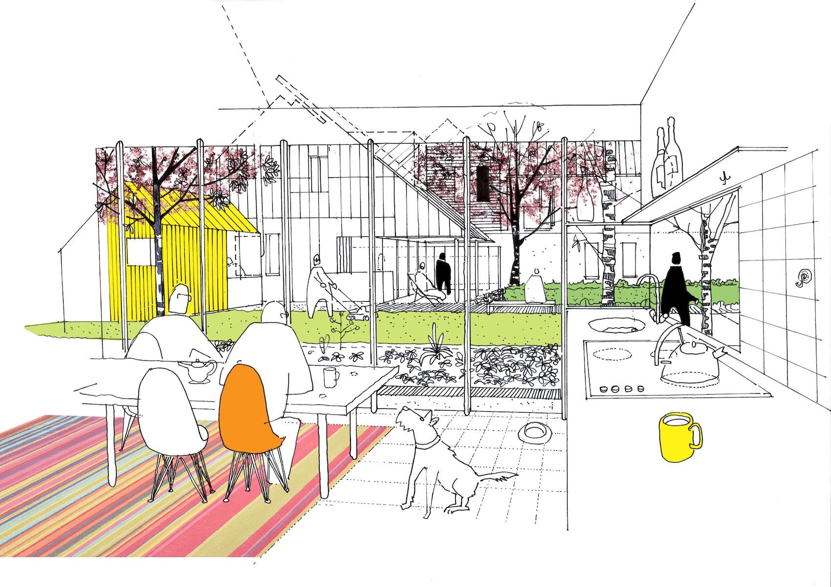 Metropolitan Workshop’s approach to suburban housing grew out of ‘Dial-a-Density’, its winning entry for the 2013 Wates/RIBA ideas competition for Build-to-Rent suburban homes. The project arranged small groups of flexible two-storey homes around a shared space at a tenure mix and density appropriate to the location. Where conventional suburbia maximises private outdoor space, Dial-a-Density prioritised parks, communal gardens, orchards and allotments.