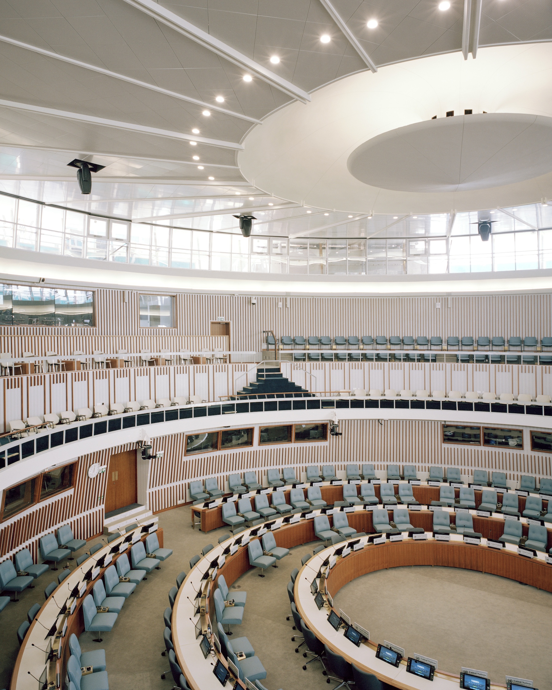 Alongside restoration, the project addressed the operational requirements of a contemporary international institution. Services, environmental systems and accessibility were carefully upgraded, with new elements integrated discreetly to preserve the clarity of the original architectural intent. Services spaces on the rooftop and a new external lift core have been clad in zinc shingles, creating a pattern that references the original mosaic tile profile, while elsewhere, the emphasis has been on continuity rather than contrast, allowing the building’s material richness and symbolic weight to remain foregrounded.