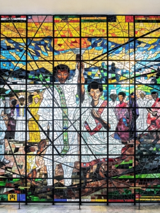 Mezzedimi’s original design is marked by a disciplined modernist composition and sweeping views across the Addis Ababa landscape. Inside, the building brings together Carrara marble, locally sourced Ethiopian stone and three monumental stained-glass windows by Ethiopian artist Afewerk Tekle, whose work lends colour, symbolism and scale to the principal interior spaces. Over time, however, material degradation and the demands of a contemporary diplomatic institution placed increasing strain on the building’s fabric and systems.
