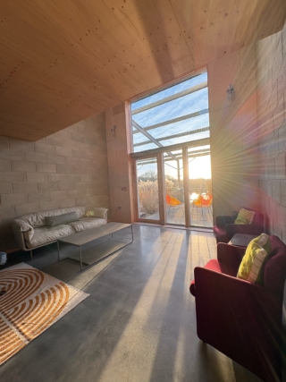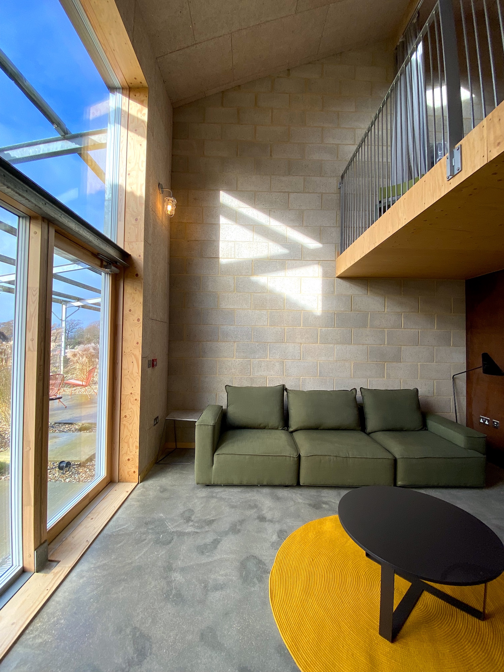 Larger groups are accommodated in the converted cow shed and one of the principal loft units, with a second steel-framed barn and a communal greenhouse and wood-fired sauna planned for future phases. The design enables flexibility across scales – from individual getaways to full-site retreats and celebrations – encouraging guests to move fluidly between private spaces and communal areas.