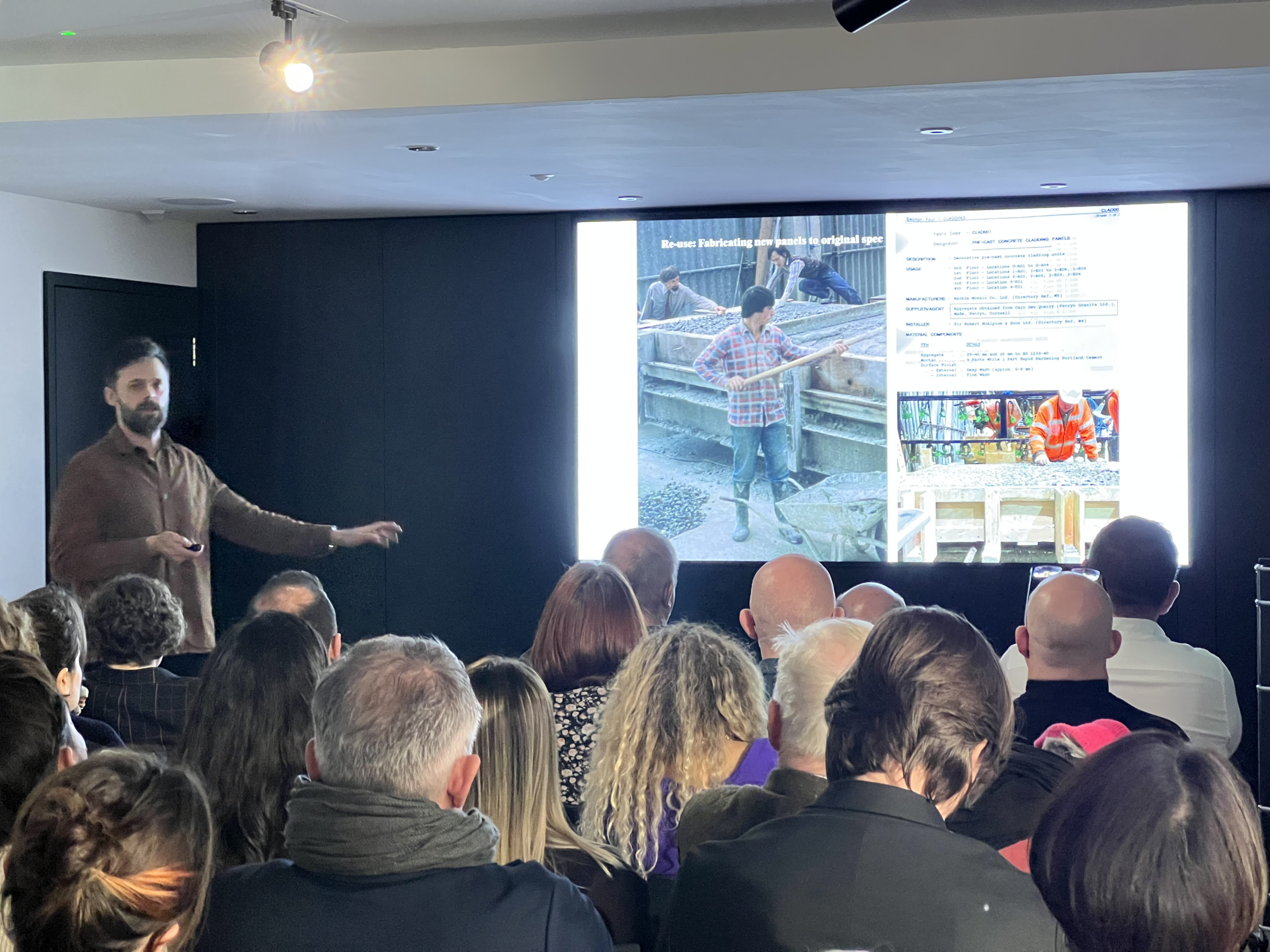 Much of the presentation focused on the technical challenges of working with an existing structure. Surveys carried out after strip-out revealed differential settlement across the 140-metre-long building, requiring careful coordination of façade tolerances and structural interventions. Testing also showed that existing concrete and foundations performed better than expected, allowing engineers to reduce strengthening works and avoid unnecessary carbon expenditure.