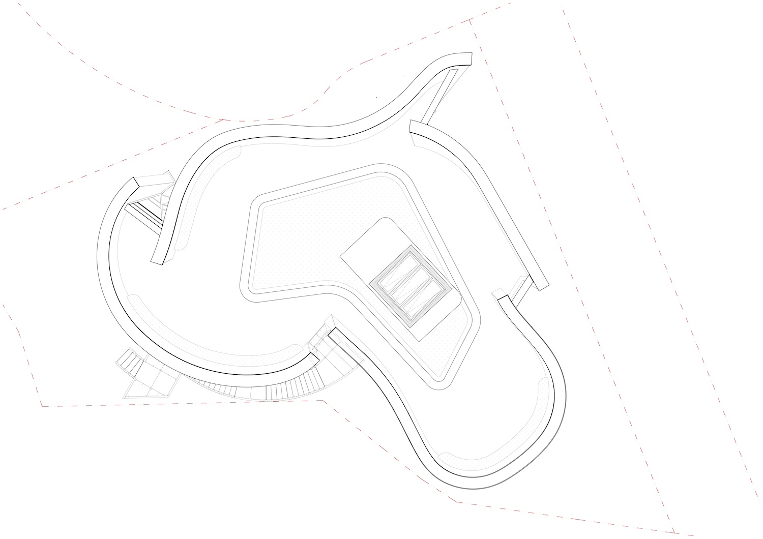 As the wall undulates, it generates alcoves for individuals or small groups, with lush planting gradually softening paths and private spaces over time.