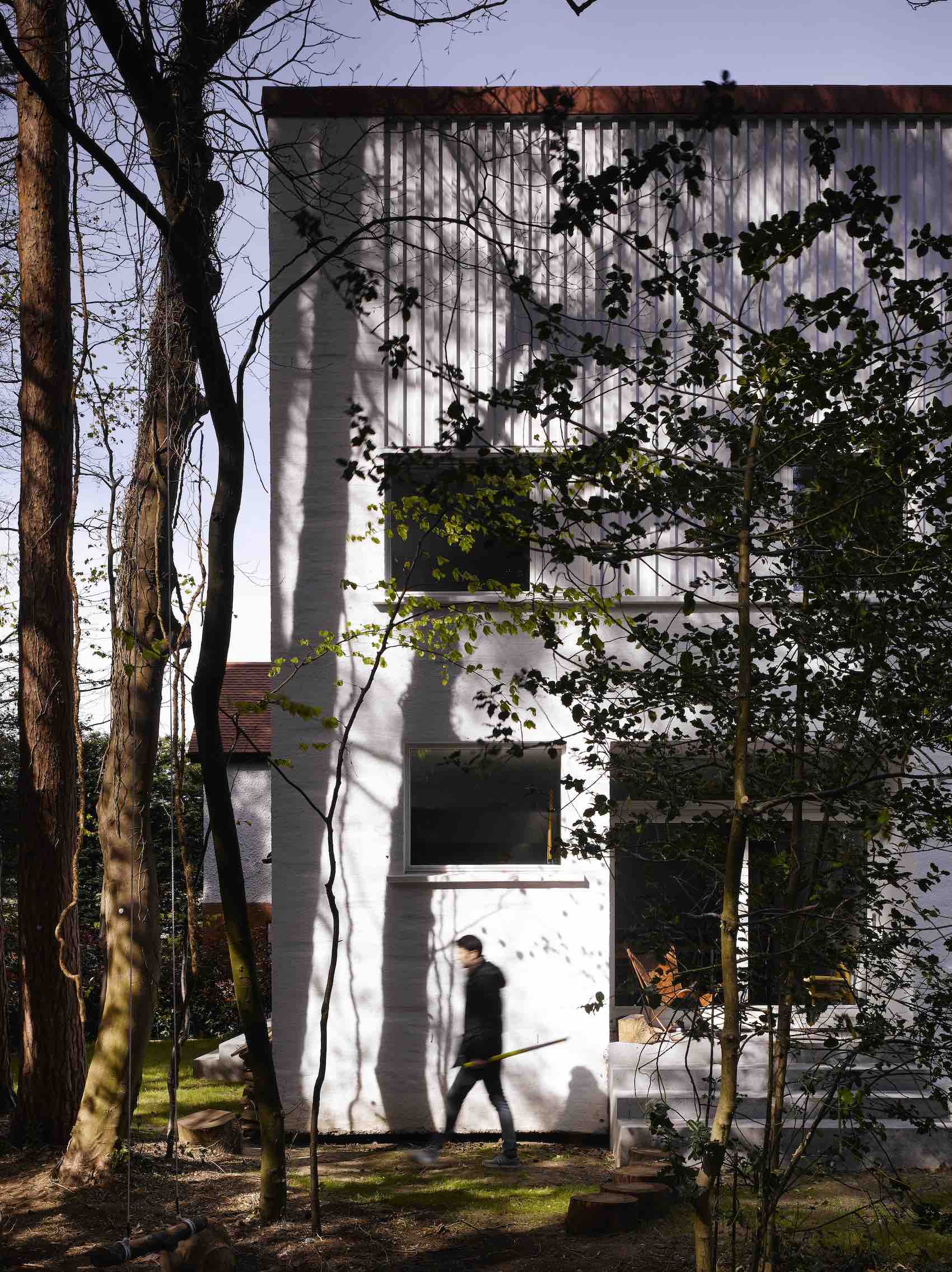 Left; House in the Woods, completed 2017 (Photo: Ros Kavanagh). Above: Meadow of Eva, a light-filled, chalky extension and refurbishment of a private house in a Dublin coastal village (Photo: Simon Menges and Nino Tugushi)