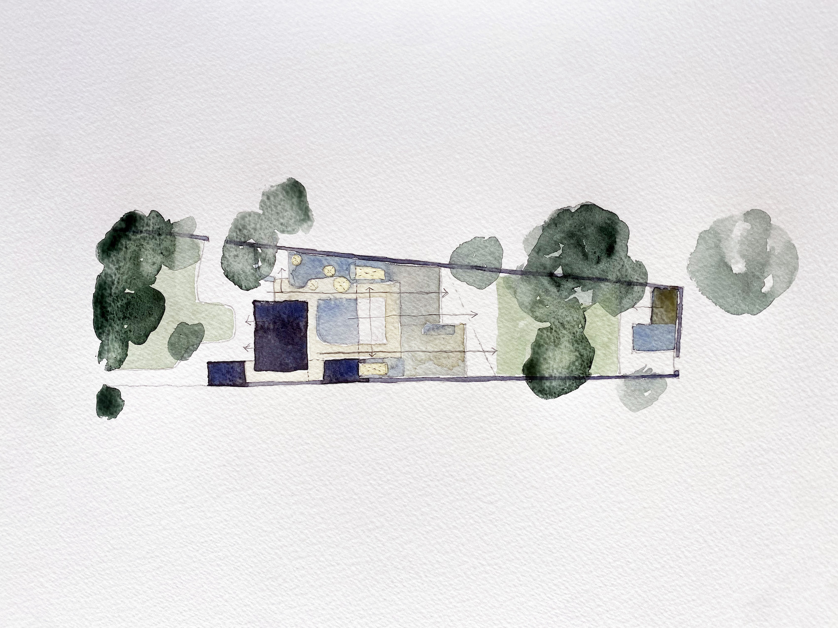 For Larmour, watercolours are a key tool, and an initial stage in any project. The above are studies of ALWA’s Palmerston site.