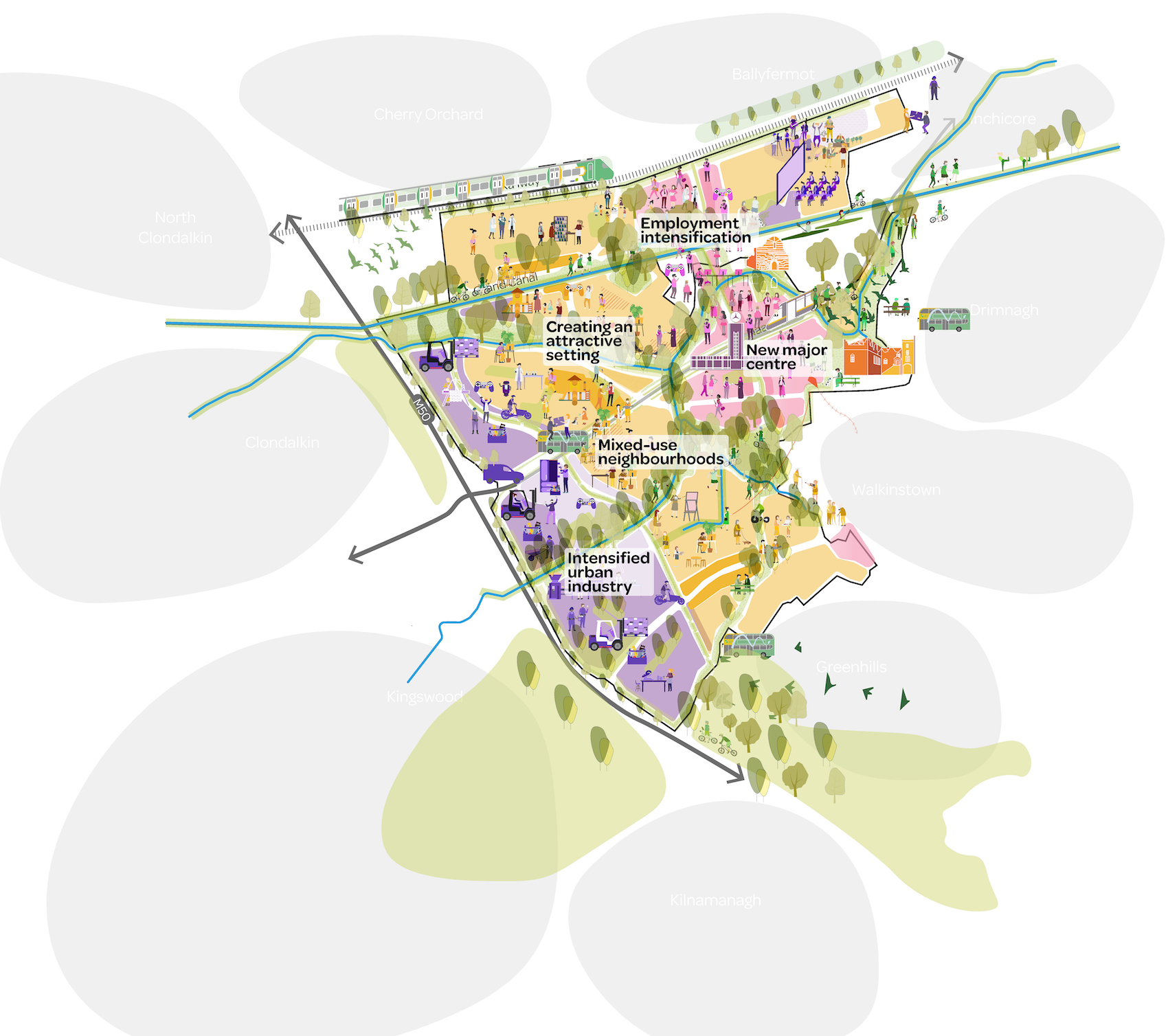 The site is already well-connected (positioned between the Naas Road, Ballymount and Park West), but with a predominantly industrial character, has a limited contribution to the city’s broader built environment. City Edge seeks to unlock this potential.