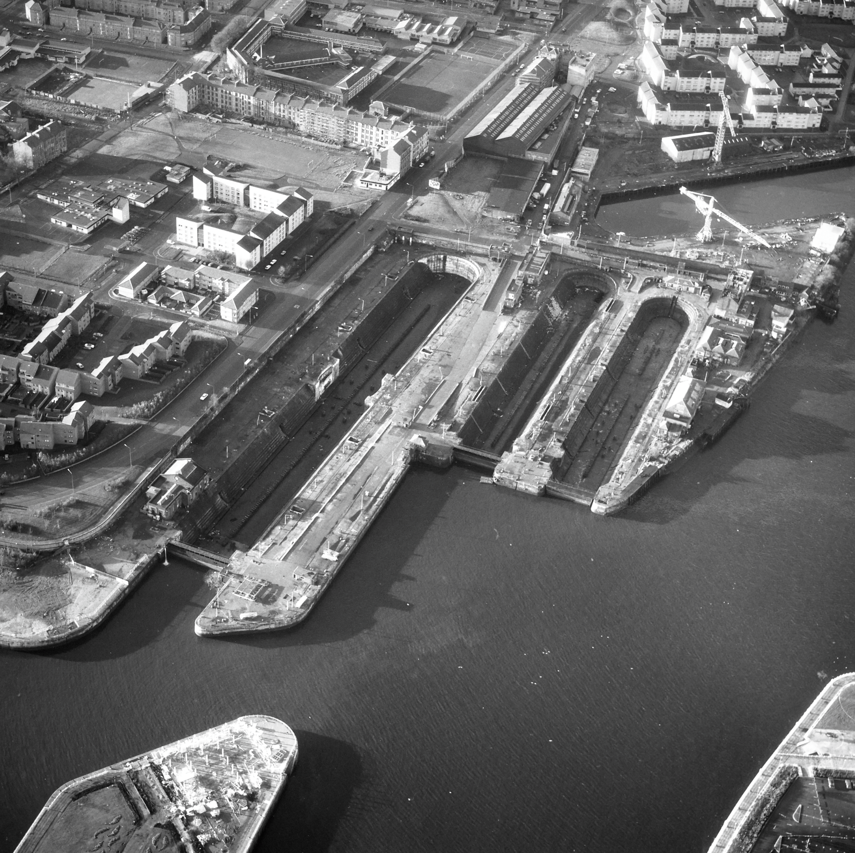 Archival ariel image of Govern Graving Docks (Credit Cranmore)