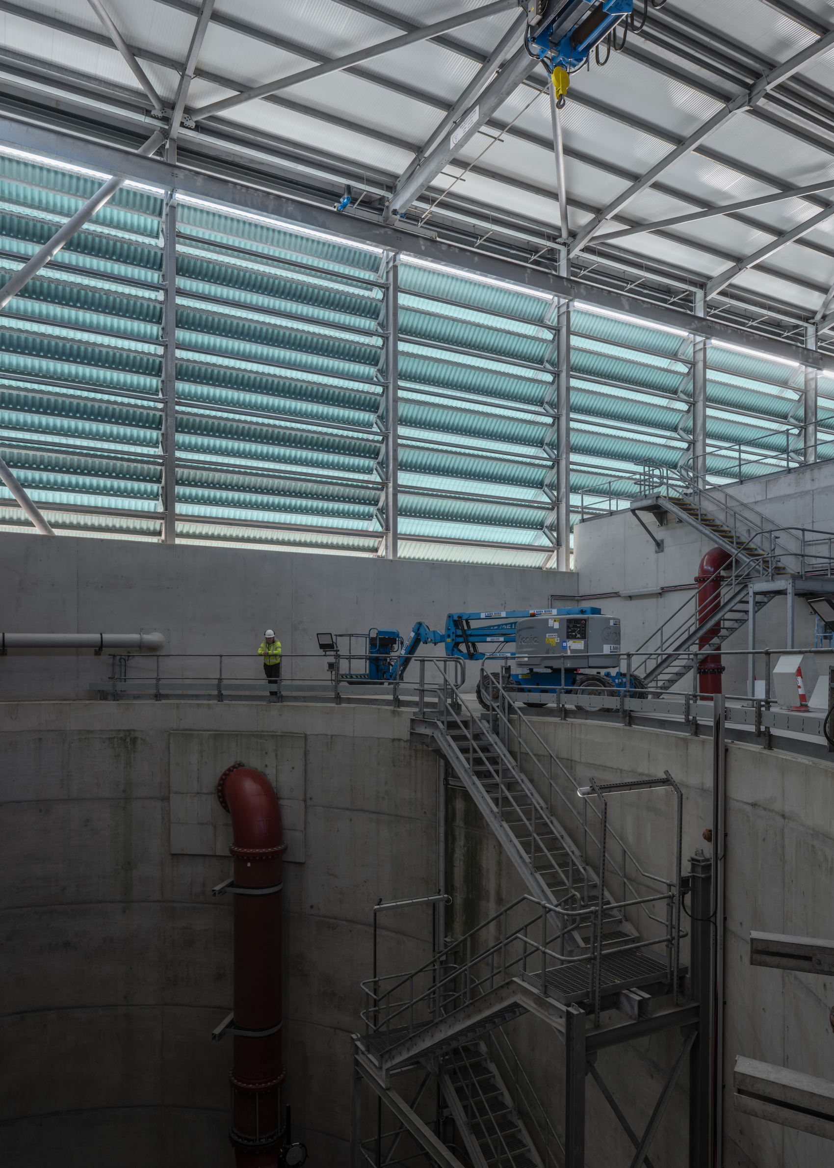 The envelope is designed to make the project civic: a gantry-served roof carries photovoltaics to offset pumping, while a perforated green ‘veil’ provides bat niches, and masks internal change –avoiding the need for repeat planning applications. With a 125-year design life and 21 disciplines involved, Clancy positioned the project as proof that firms “of any scale can engage with intelligence and deliver something of lasting value,” and as a call for deeper collaboration to unlock the country’s collective capacity.
