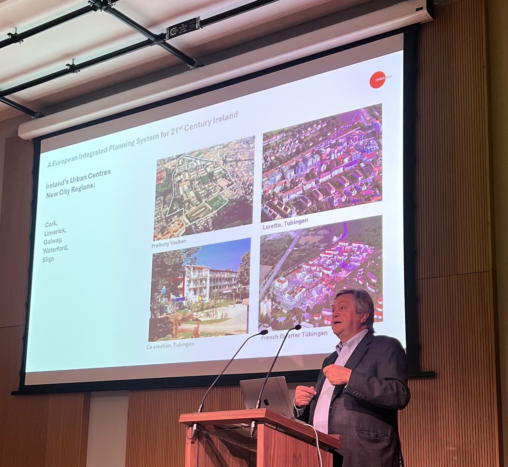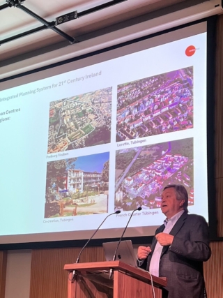 Opening the afternoon session, Tony Reddy, Founder of Reddy Architecture + Urbanism, and former President of the RIAI, contended that Ireland’s discretionary, case-by-case planning system is outdated, inefficient, and unfit for purpose. Rooted in the British model, it has fostered suburban sprawl and stalled delivery of housing and mixed-use communities, leaving the country unable to meet demand. By contrast, he pointed to European cities, such as Copenhagen, Helsinki and Freiburg, where integrated urban design frameworks set clear parameters decades in advance, and are delivered to strict timetables, with planners focused on urban design and landscape rather than development control.