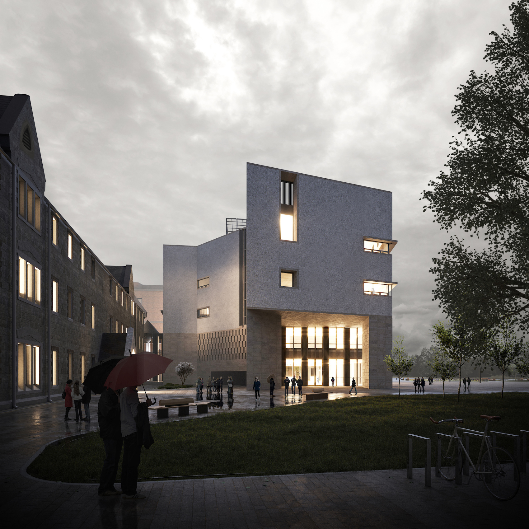 Currently under construction, O’Donnell + Tuomey’s, Academic Hub and Library at Technological University Dublin’s Grangegorman Campus is conceived as a landmark building and showcase for learning, research and academic activities (cgi: ZOA3D).