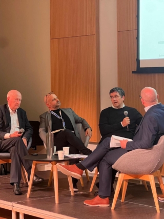 The morning session concluded with a panel discussion chaired by Isabel Allen, and featuring Conor Streenan, John Tuomey, David Browne and Andrew Clancy. Questions touched on themes of value, public space, city growth, and the role of the architect as an agent of change. Streenan contrasted UK approaches to measuring social value with Ireland’s more fundamental challenge of convincing government of architecture’s worth. Tuomey emphasised the civic duty of architecture, advocating porous boundaries and buildings that “give back” to public life. Browne pointed to the potential for compact, sustainable growth in Irish cities, drawing on European precedents, while Clancy argued that architecture should be understood as a conversation shaped by uncertainty rather than false certainties.