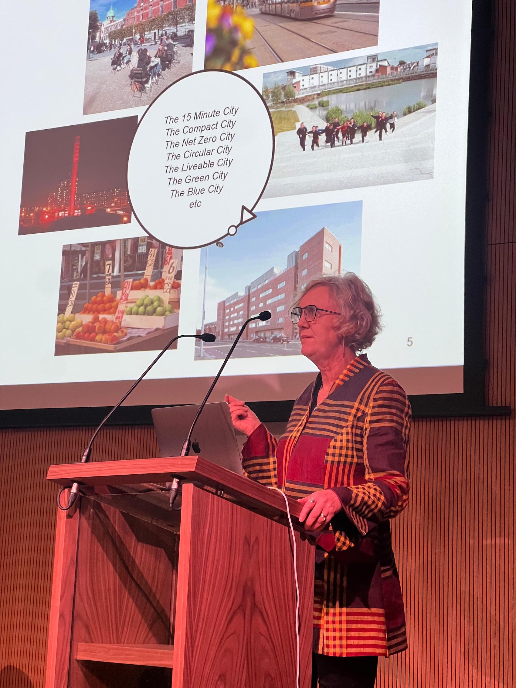 Ali Grehan, former Dublin City Architect and current Chair of the Irish Green Building Council, drew on her experience in Dublin and the Cloughjordan Ecovillage to explore how Irish cities might grow sustainably. Using seeds as a metaphor for diversity, resilience and place-specific identity, she highlighted how Cloughjordan, though only partially built, already demonstrates the social intensity and services of a thriving urban neighbourhood.