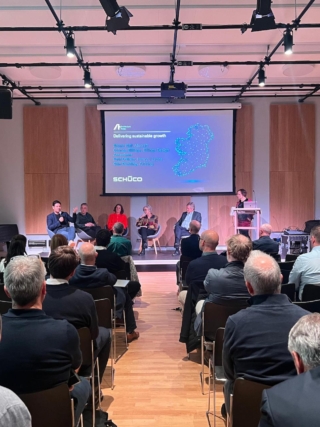 After brief introductions from Enda McGrath, Schüco Architectural Project Manager (UK and Ireland), and Isabel Allen, Dan Gleeson, Schüco Sales Director (UK and Ireland) opened the morning session by welcoming delegates and underlining Schüco’s commitment to creating a sustainable built environment through initiatives, such as carbon reduction in materials and façade remediation. He emphasised the importance of collaboration across disciplines and sectors, arguing that innovation in design and technology must drive the development of high-performance, sustainable buildings and urban spaces. Gleeson framed the ambition for the day as threefold: to highlight how partnerships can accelerate change, to recognise the link between good design and quality of life, and to foster a shared commitment to action that ensures every project contributes positively to both the planet and its communities.