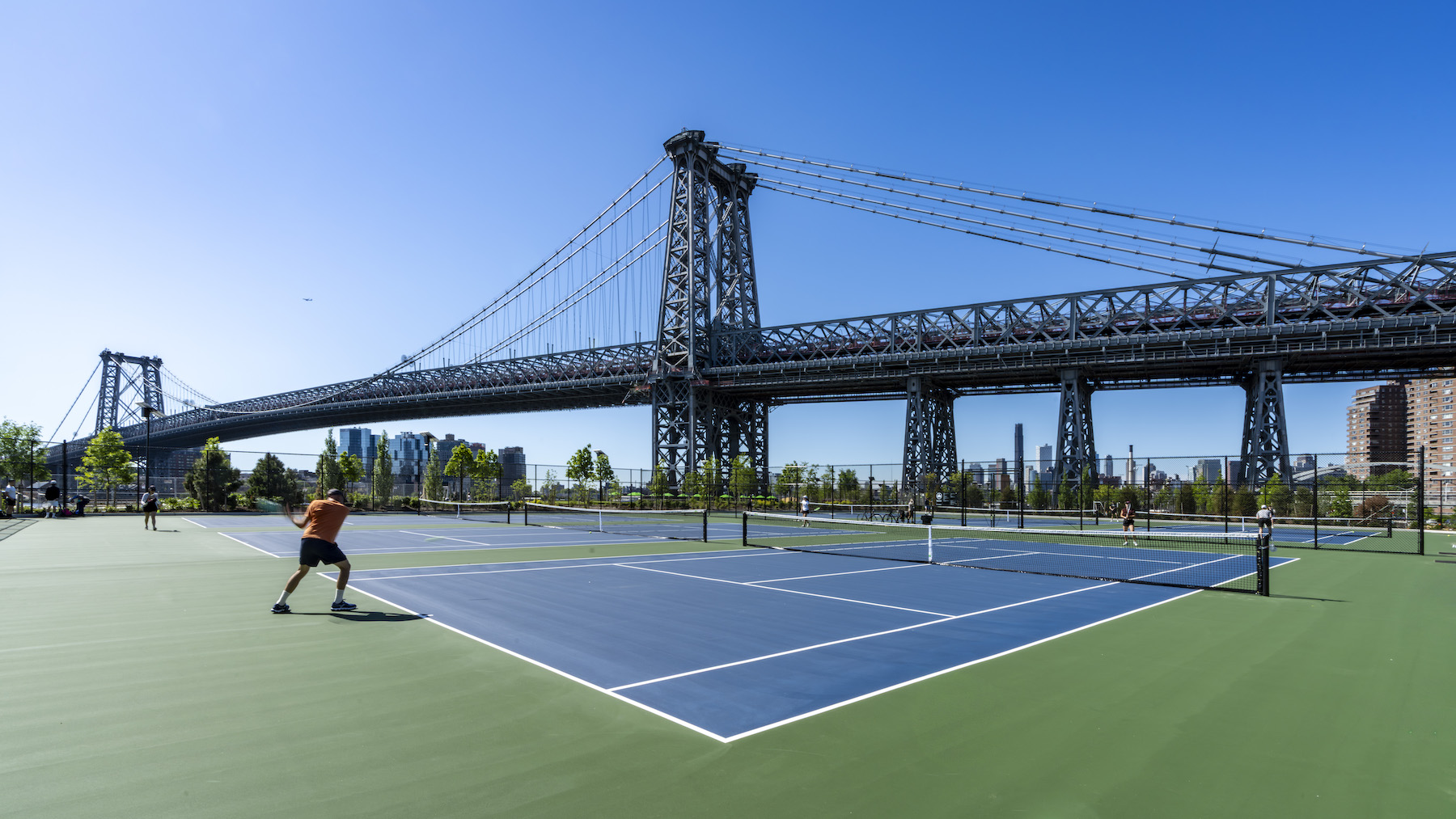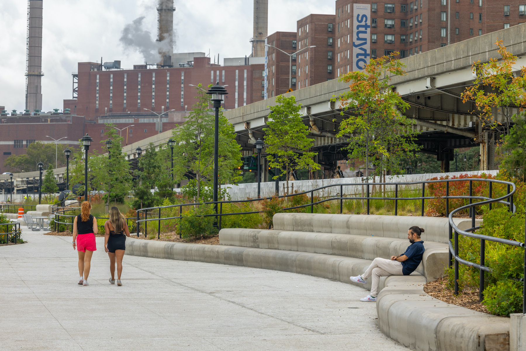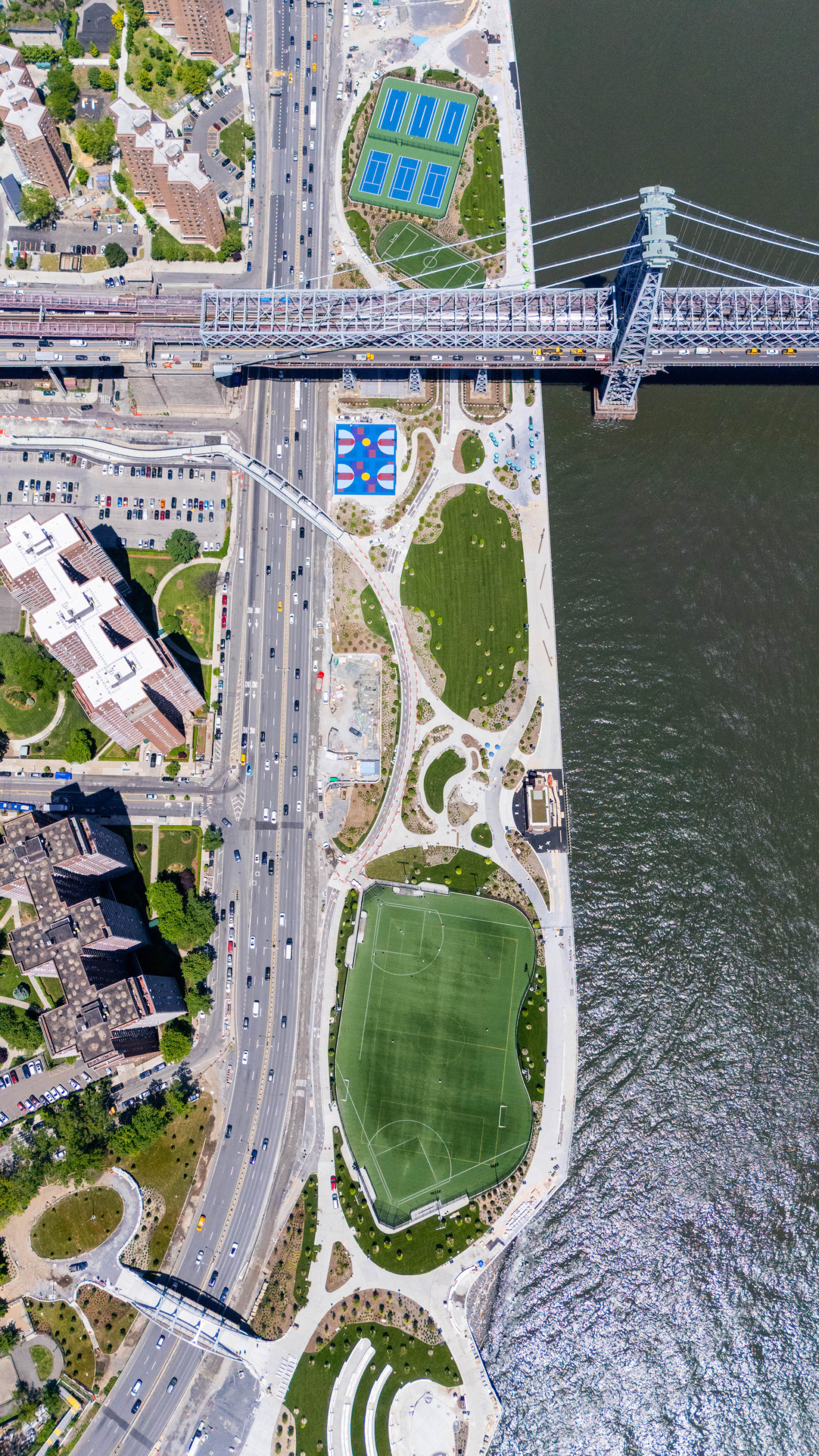 The multi-phased project has recently advanced into the second phase of construction, with nearly all amenities south of the Williamsburg Bridge opened to the public. Two new pedestrian bridges at Delancey Street and Corlears Hook provide access to the reopened southern end of the park, while future phases will include another bridge at East 10th Street. Although this transition has required closing the northern end of East River Park, at least 42 per cent of public space remained accessible throughout construction.