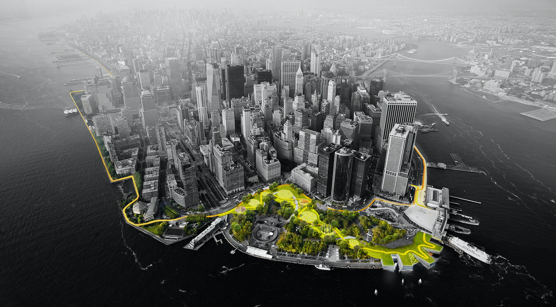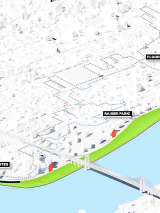 Further development continues to the south, where BIG is also designing the North-West Battery Park City Resiliency Project with Turner & EE Cruz Joint Venture, SCAPE Landscape Architecture, and Arcadis. Running from South Cove to North Moore Street in Tribeca, these initiatives will eventually form a continuous, climate-resilient waterfront, protecting Lower Manhattan from worst-case sea-level-rise projections for the 2050s.
