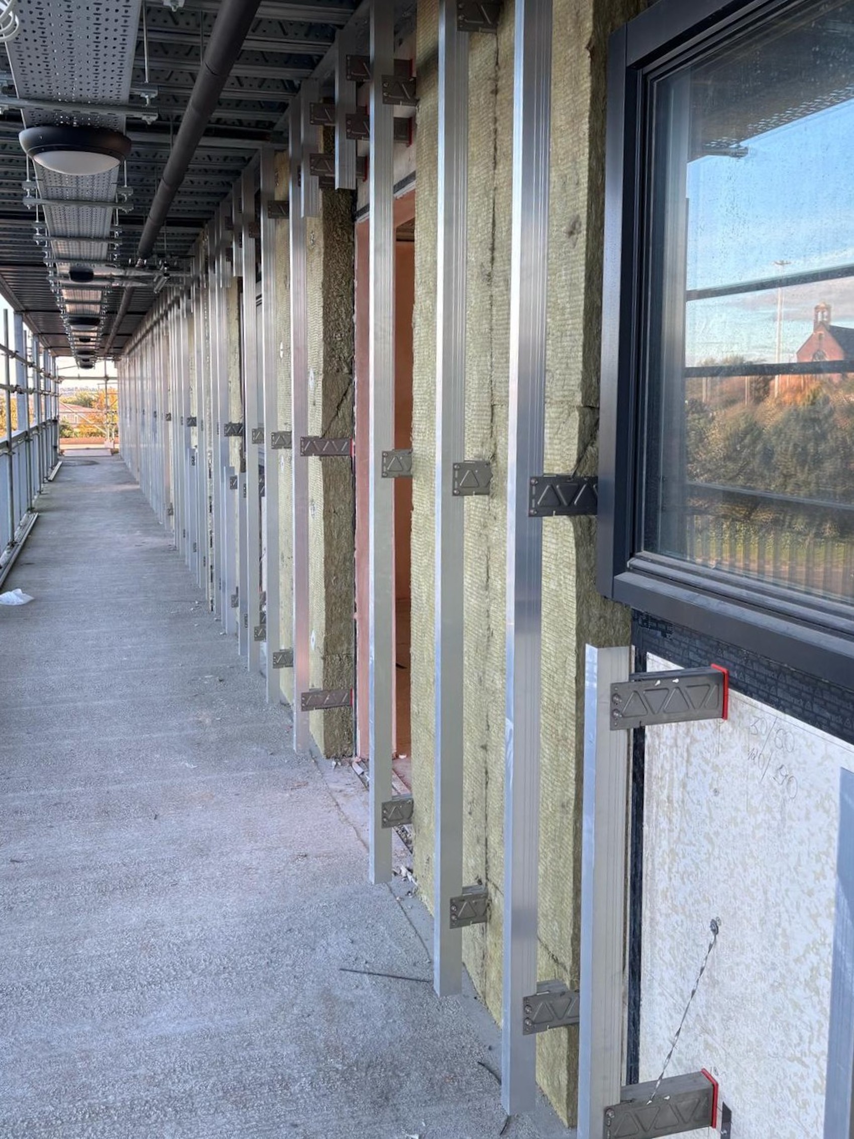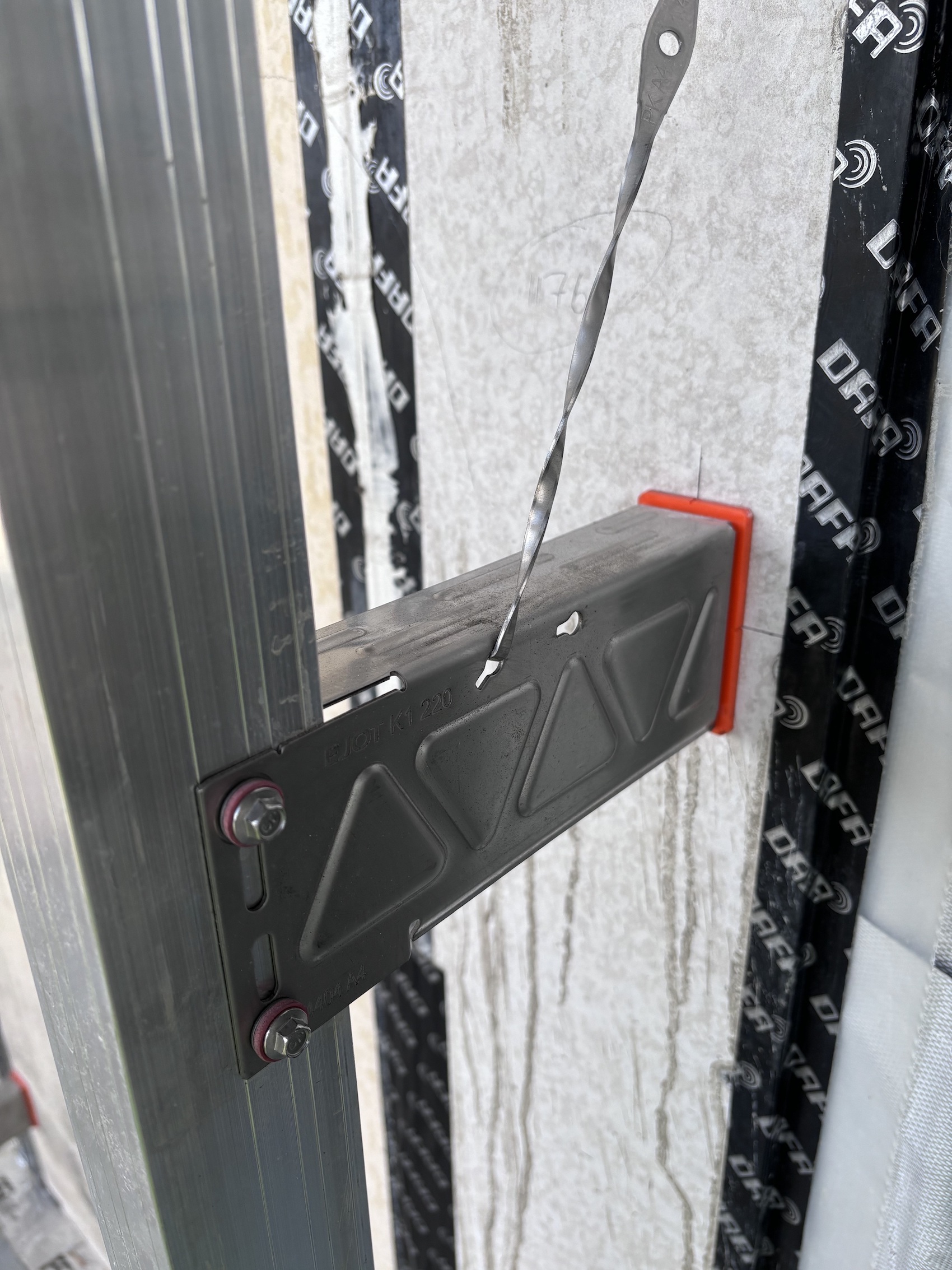 The advantages offered by CROSSFIX mainly result from its stainless steel composition. The material’s low thermal conductivity means thermal bridging in each bracket of the substructure is far lower than it would be for aluminium equivalents. The material’s increased strength versus aluminium also reduces the number of brackets required when building with CROSSFIX, resulting in fewer structural connections from the building substrate to the outer sheet – further reducing thermal bridging potential.