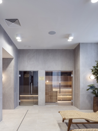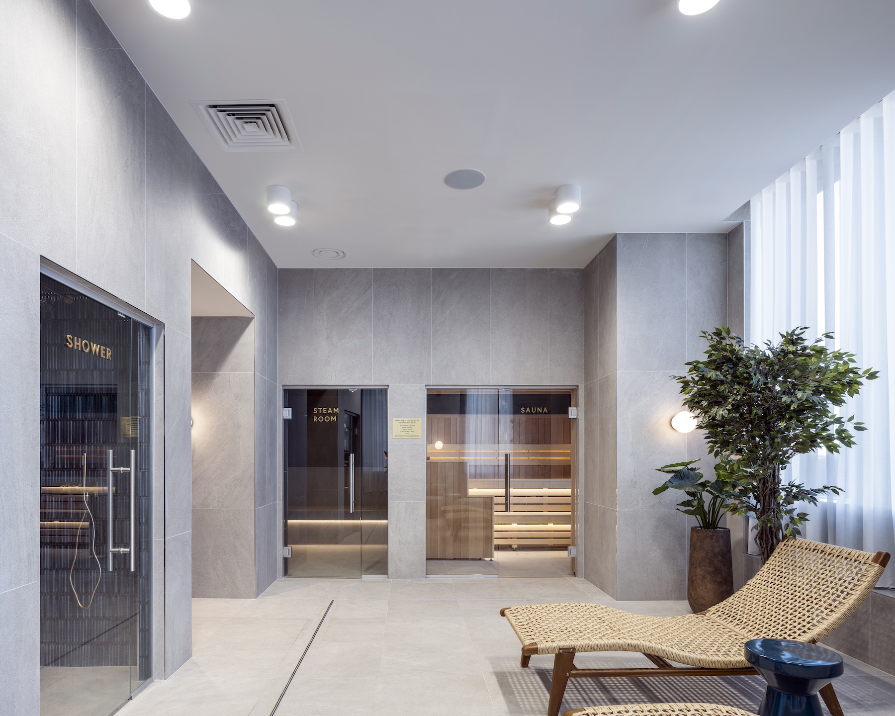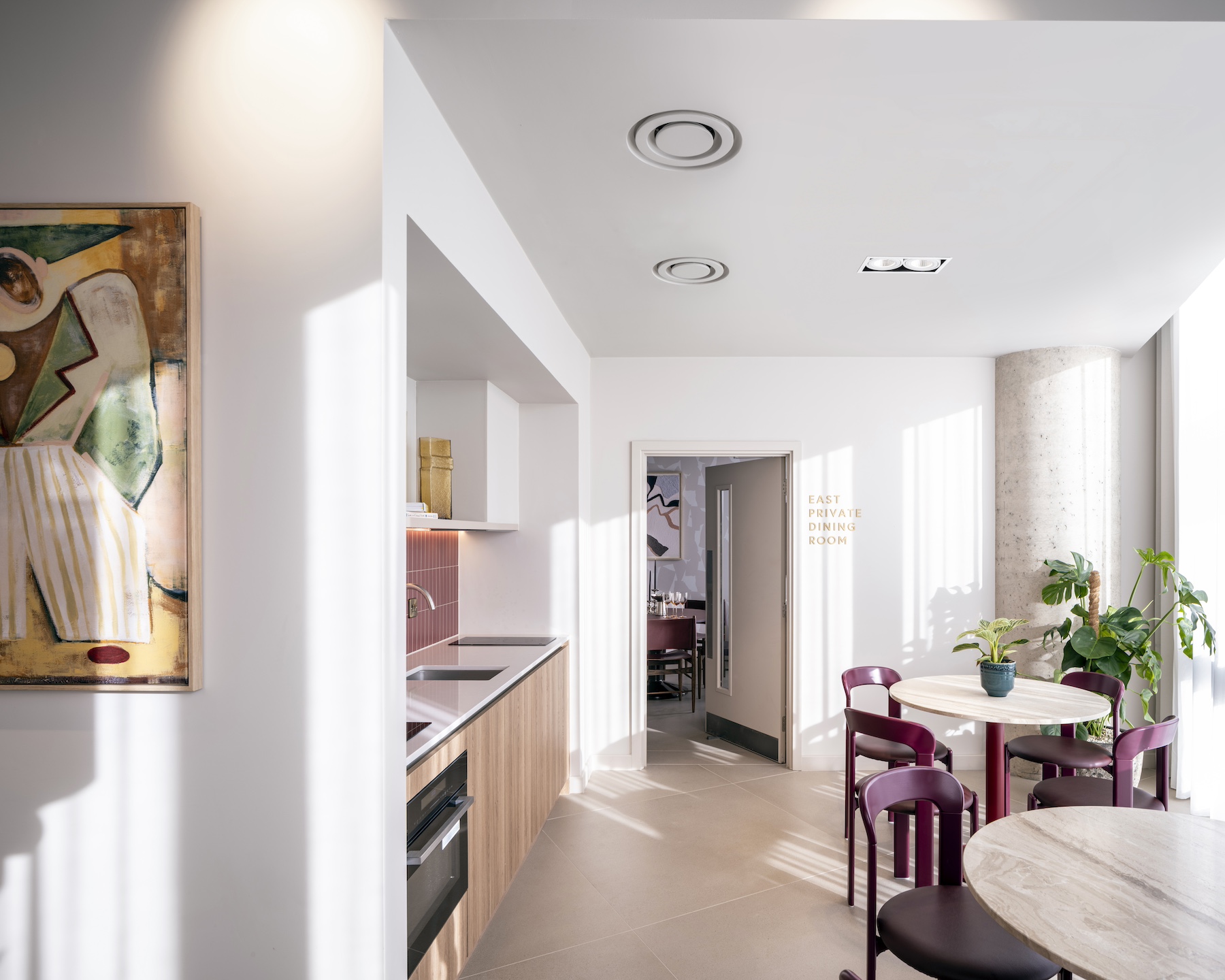 Around 1,500 square metres of shared facilities are distributed throughout the building, encouraging social interaction and supporting day-to-day wellbeing. At roof level, a terrace with panoramic views is paired with enclosed sunrooms, allowing the space to be used year-round, while structured landscaping at ground level defines the building edge and contributes to the public realm.