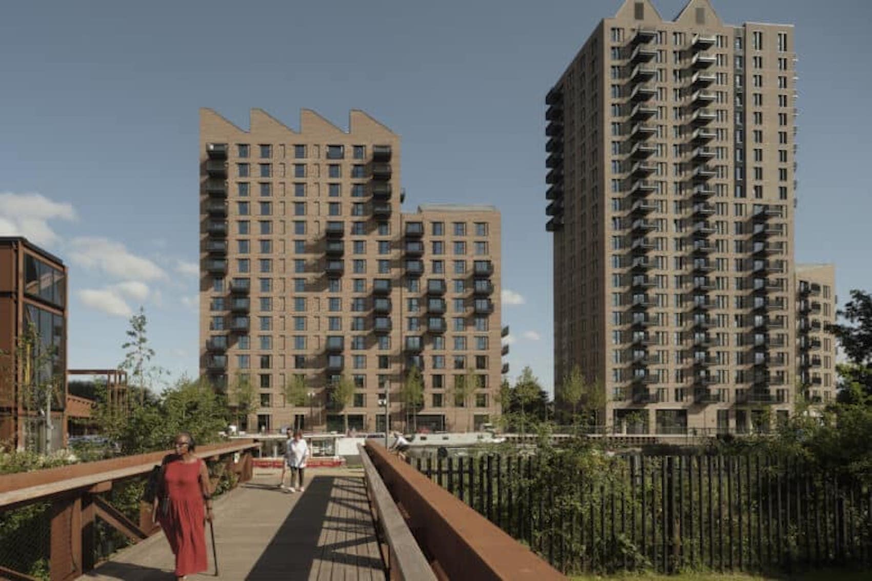 The first phase of Hale Wharf by Allies and Morrison delivers 249 homes across two buildings, alongside commercial spaces, public realm and a pedestrian bridge overlooking the River Lee. Freshfield Lane’s Selected Dark and First Quality Multi bricks reference the area’s historic canal-side character, with tones that sit comfortably alongside water, greenery and contemporary architecture. The development includes affordable housing and benefits from strong public transport connections and nearby natural spaces.