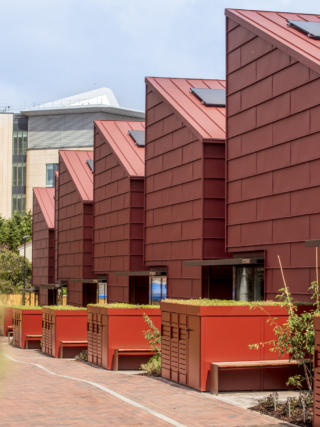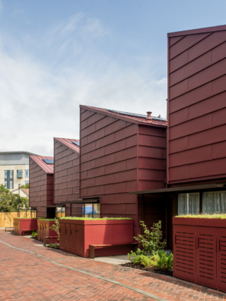 Entrances have been set behind small front gardens with green planting and space for seating, promoting what the architects call a “front porch culture,” all designed to encourage community interaction, in turn building neighbourly connections while softening the streetscape.