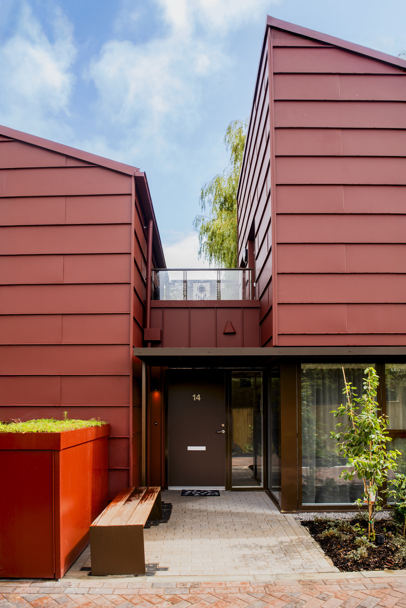 Entrances have been set behind small front gardens with green planting and space for seating, promoting what the architects call a “front porch culture,” all designed to encourage community interaction, in turn building neighbourly connections while softening the streetscape.