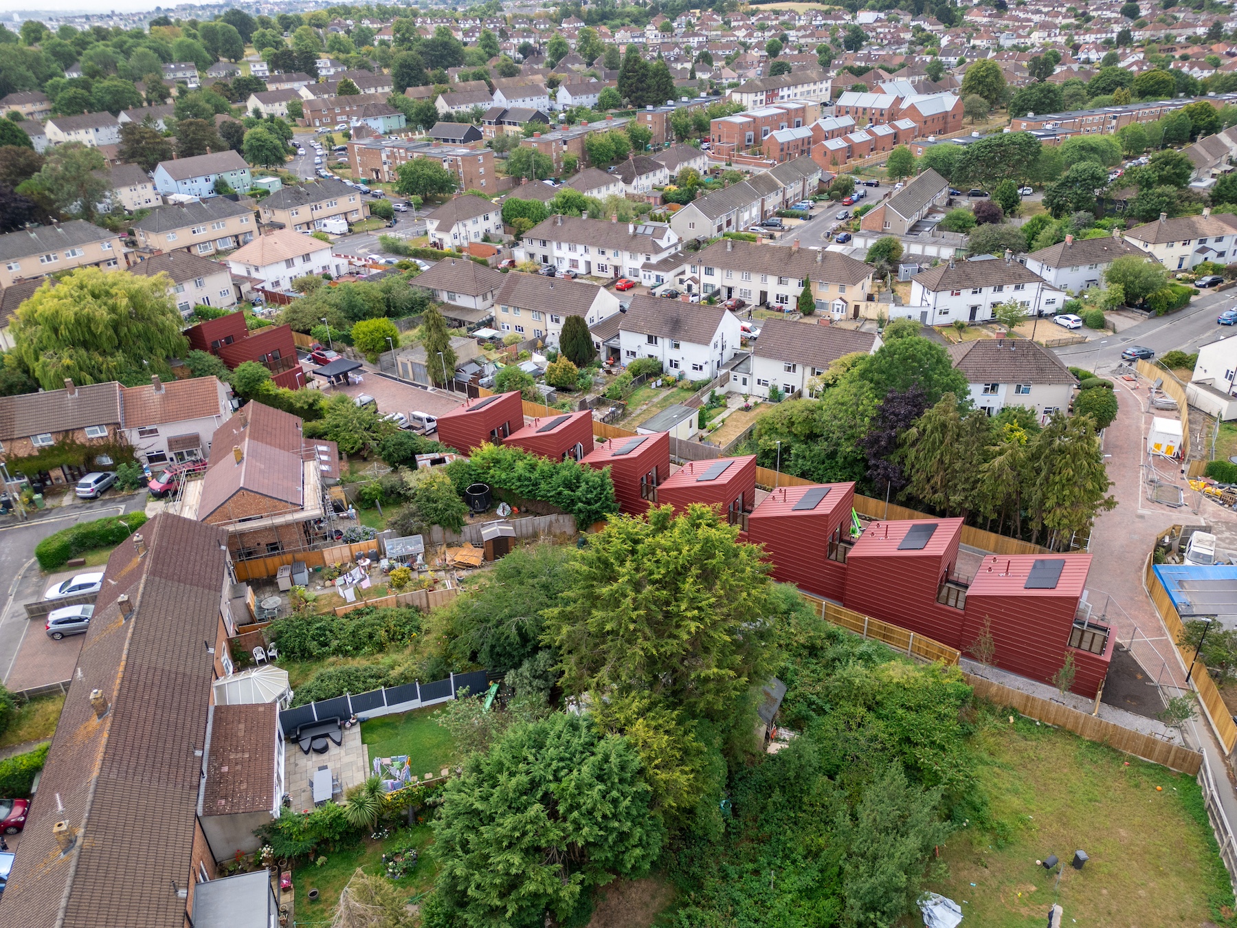 Originally unveiled at the Bristol Housing Festival in 2018, the Gap House concept was conceived as a flexible and replicable approach to urban regeneration, one that could unlock the thousands of disused garage sites and slivers of brownfield land scattered throughout the UK’s housing estates. The completed scheme in Bell Close, Horfield, marks its first built realisation.