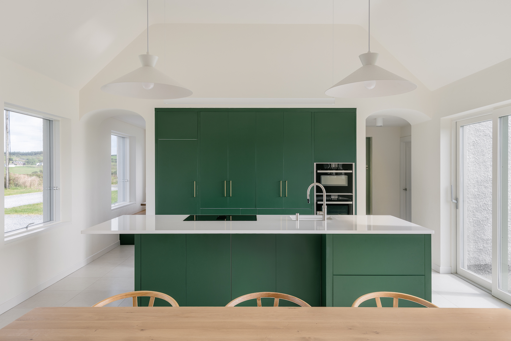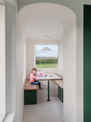 Cork-based fuinneamh workshop complete a family home in rural Country Clare that uses the architectural language of 20th century Irish farmhouses to create a spacious, bright and subtly quirky take on the traditional template.