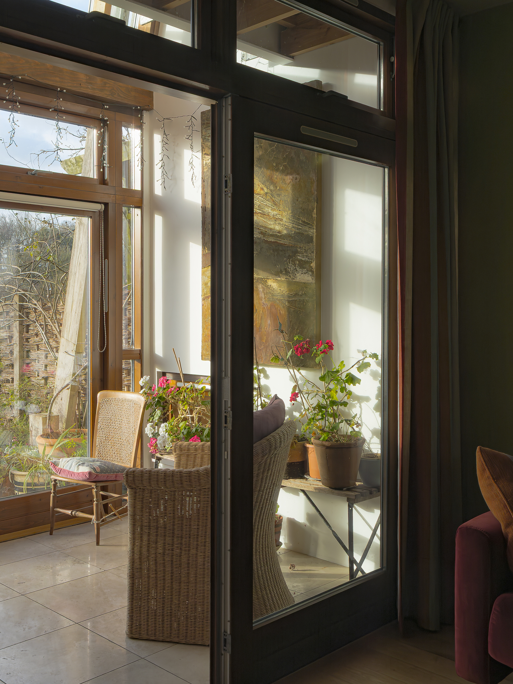 Rob Delius We were very interested in doing a passive solar scheme. Bear in mind this was back in 2006 when there was a lot of focus on that in the industry. We noticed that houses often have conservatories put on the back of them, and we wondered why that was. Obviously, there was something about the houses which wasn’t providing enough light, enough connection to the garden, or enough space. People love having that conservatory-type space. But they get very cold in the winter and overheat in the summer. So we wanted to explore the idea of a conservatory integrated into the house in a way that would work environmentally. We designed it to be double-height so we could get stack ventilation going. It is ventilated at the top and bottom, and it has a timber screen in front of it, which welcomes winter sun in, but excludes the summer sun. So it helps it not overheat.