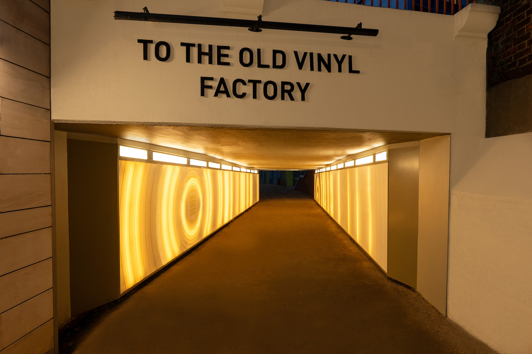 Backlit HIMACS solid surface panels illuminate Hayes underpass in London (photo: James Latham).