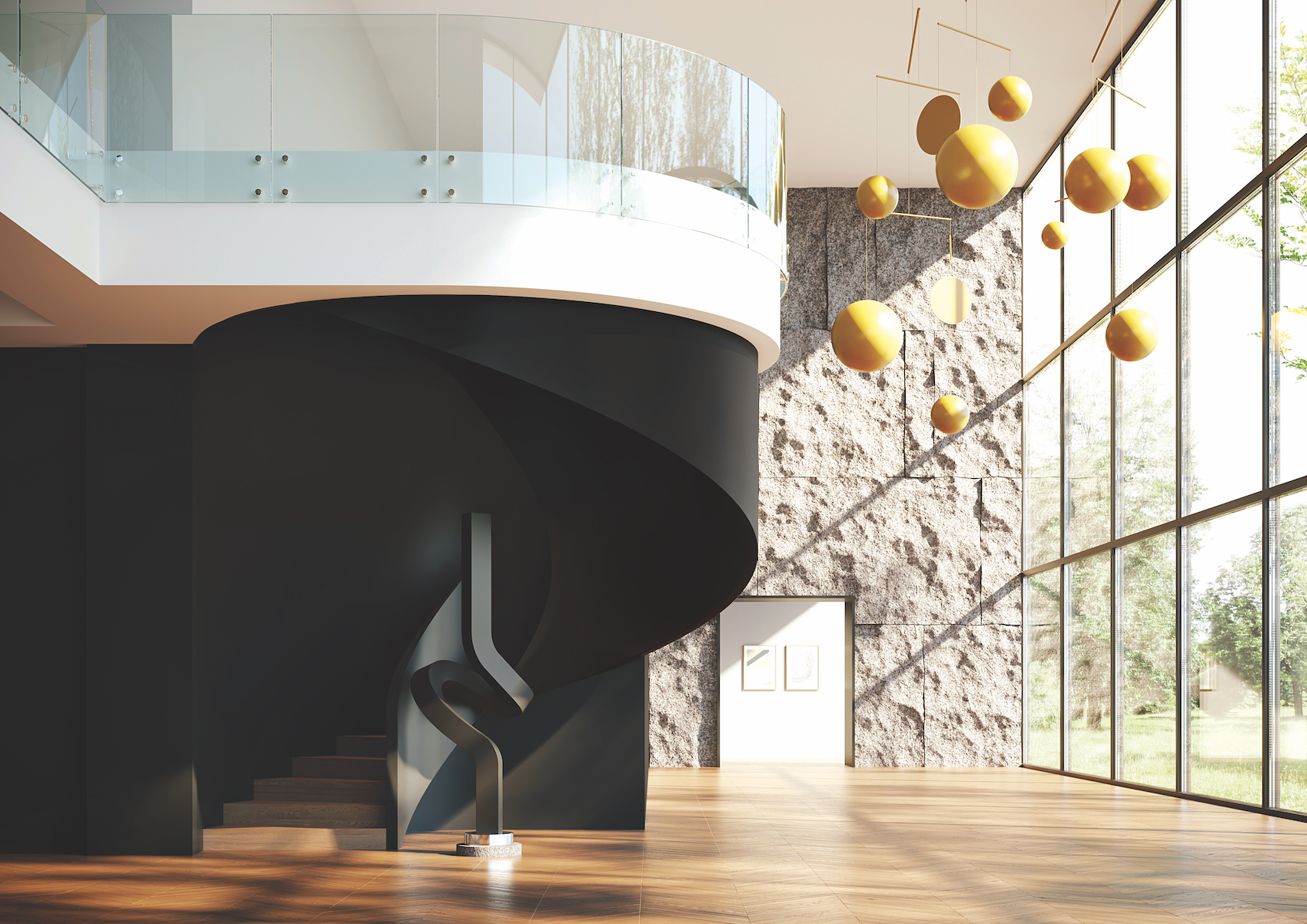 Thermoformed staircase in HIMACS Intense Ultra Black (photo: LX Hausys).