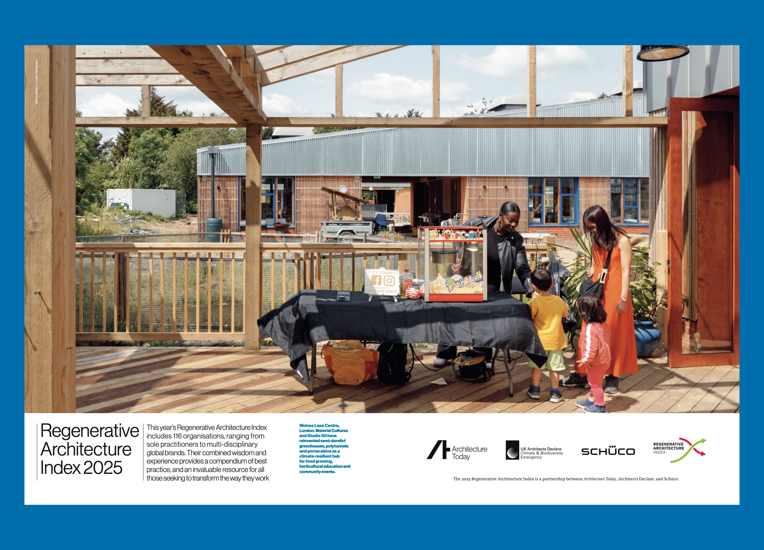 This issue is dedicated to the Regenerative Architecture Index 2025. Launched a year ago by Architecture Today and Architects Declare UK, the RAI has taken on a life of its own. While there were 64 practices in the inaugural RAI, there are 116 organisations on this year’s list: architectural practices of every size, plus a smattering of landscape architects and engineers.