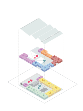 In plan, the school has been organised around two central spaces: one vibrant and social, the other calm and contemplative. Classrooms, studios and specialist teaching rooms open onto these “hearts”, allowing for both collaborative and independent learning. The arrangement also looks to provide a sense of openness and flexibility, encouraging interaction between students while supporting focused study.