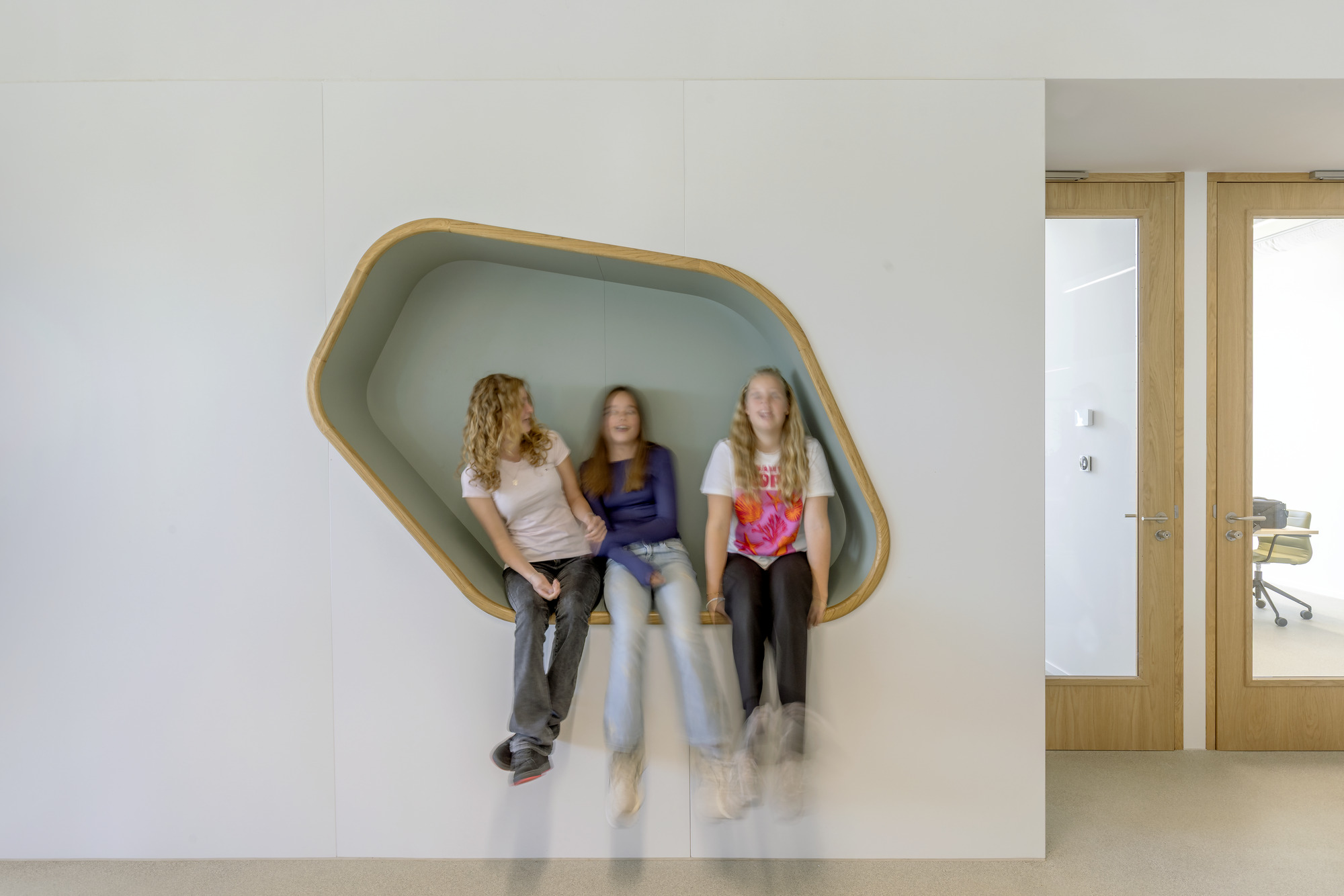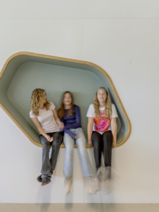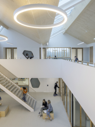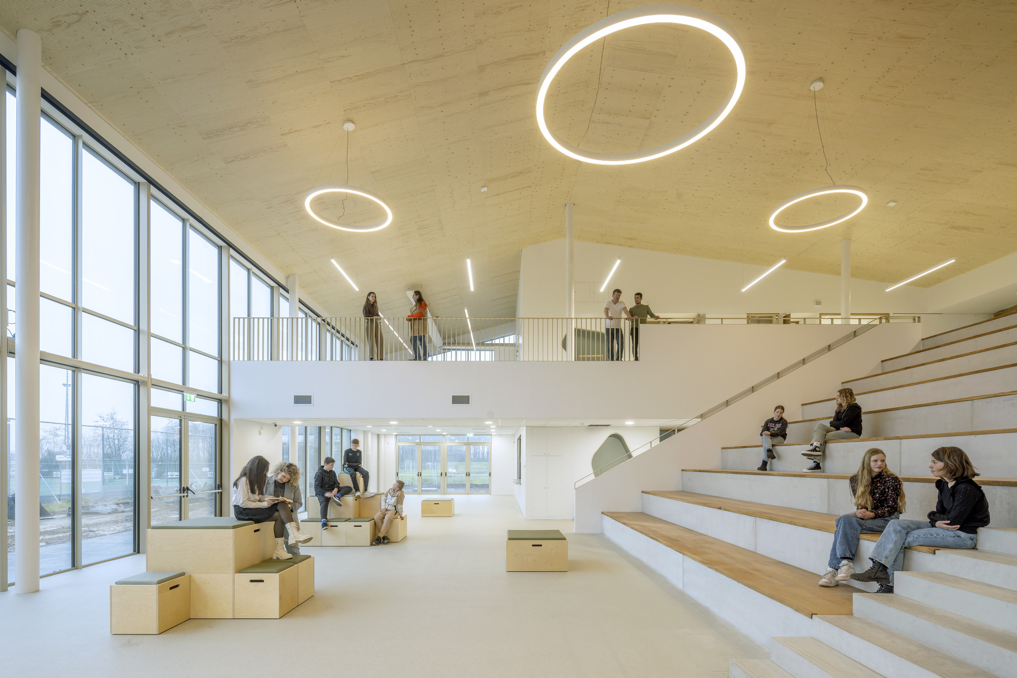 “The daylight, flowing along the timber shed roofs into the heart of the school is stunning,” added Sander Boersma, principal of LennaMare. “The acoustics throughout the entire school are great and the warm, natural materials contribute to a pleasant atmosphere. Students say they feel more calm and can focus better on their tasks in their new school. That is a huge compliment to the design team that made this building come to life!”