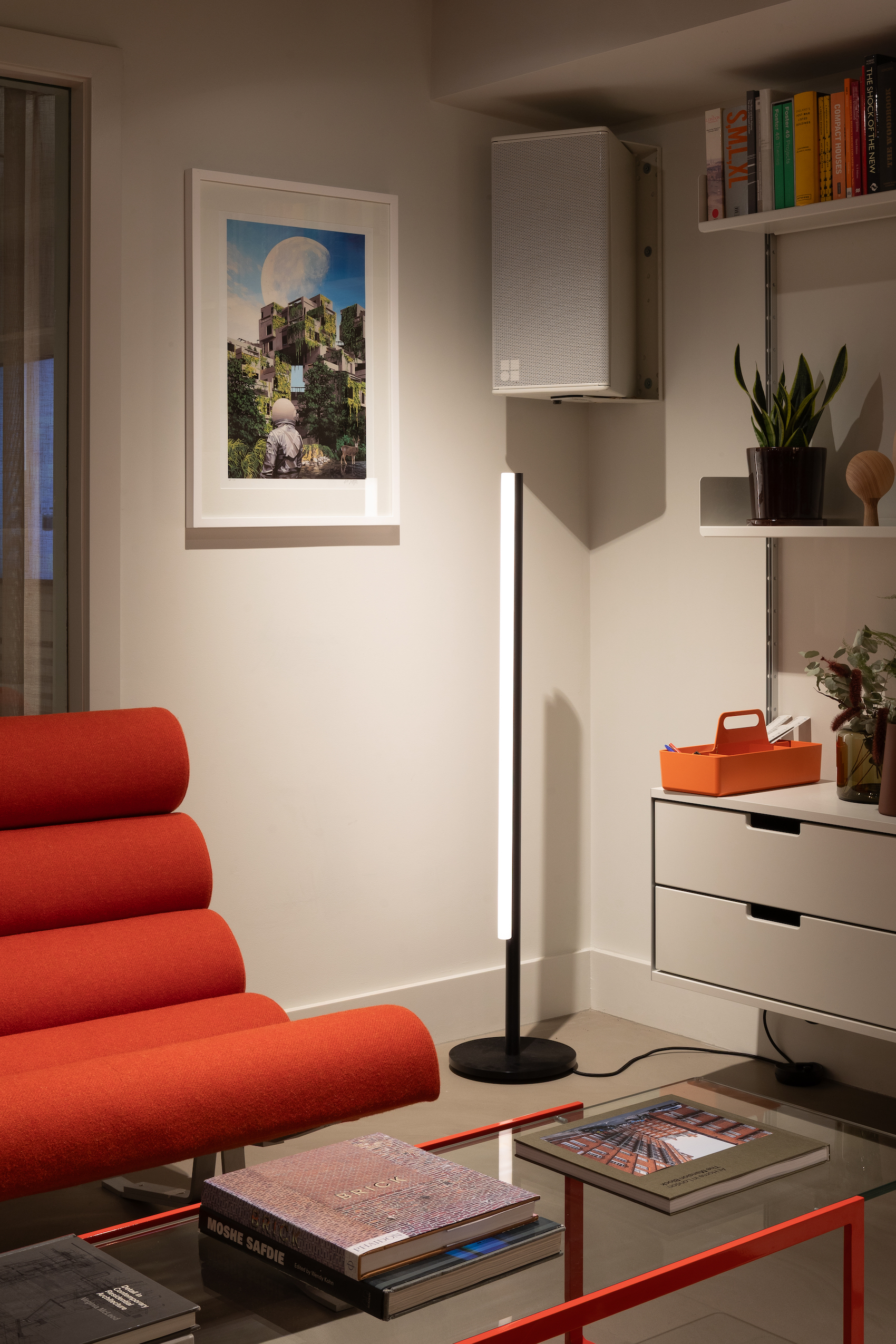 Left: One Well- Known Sequence floor lamp by Michael Anastassiades. “Michael has kindly lent this floor lamp to us, and we are enjoying both its design and gorgeous colour temperature. The light it gives off is incredibly soft and gentle.”