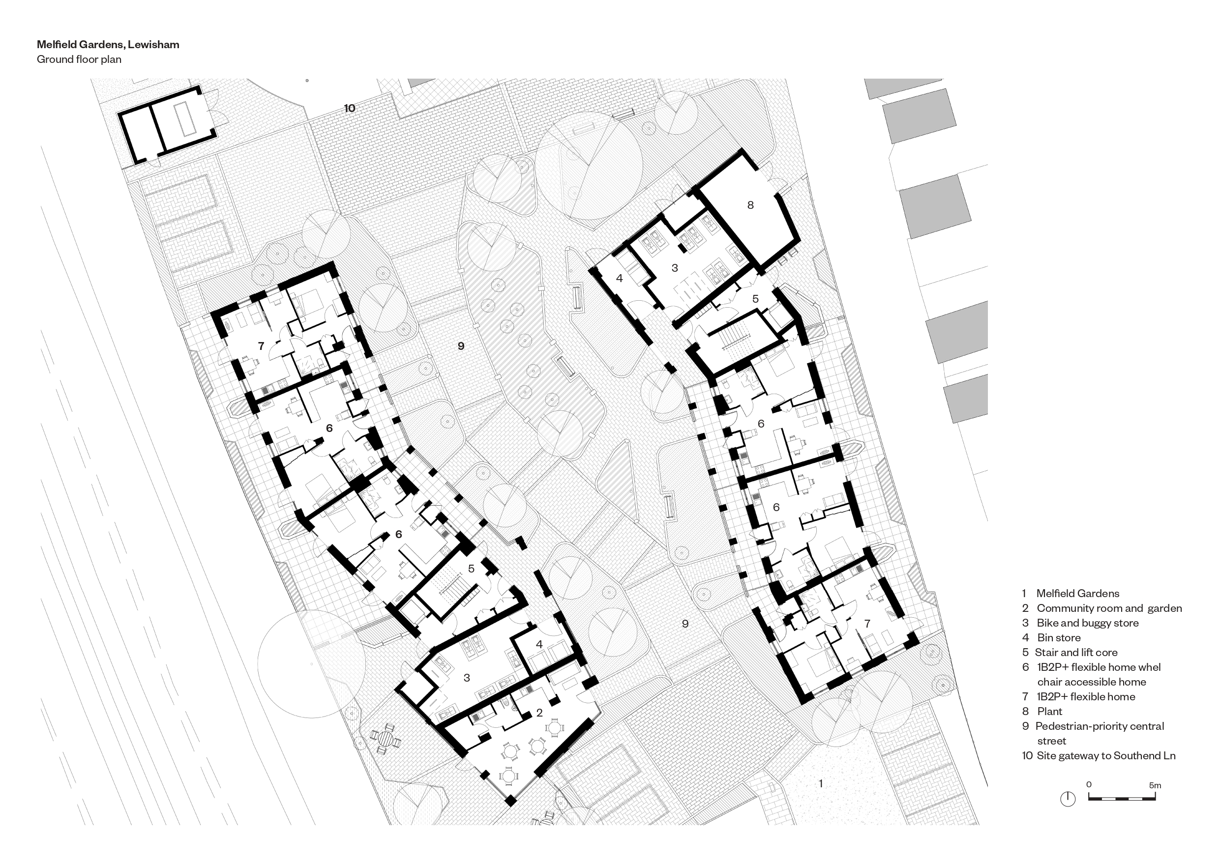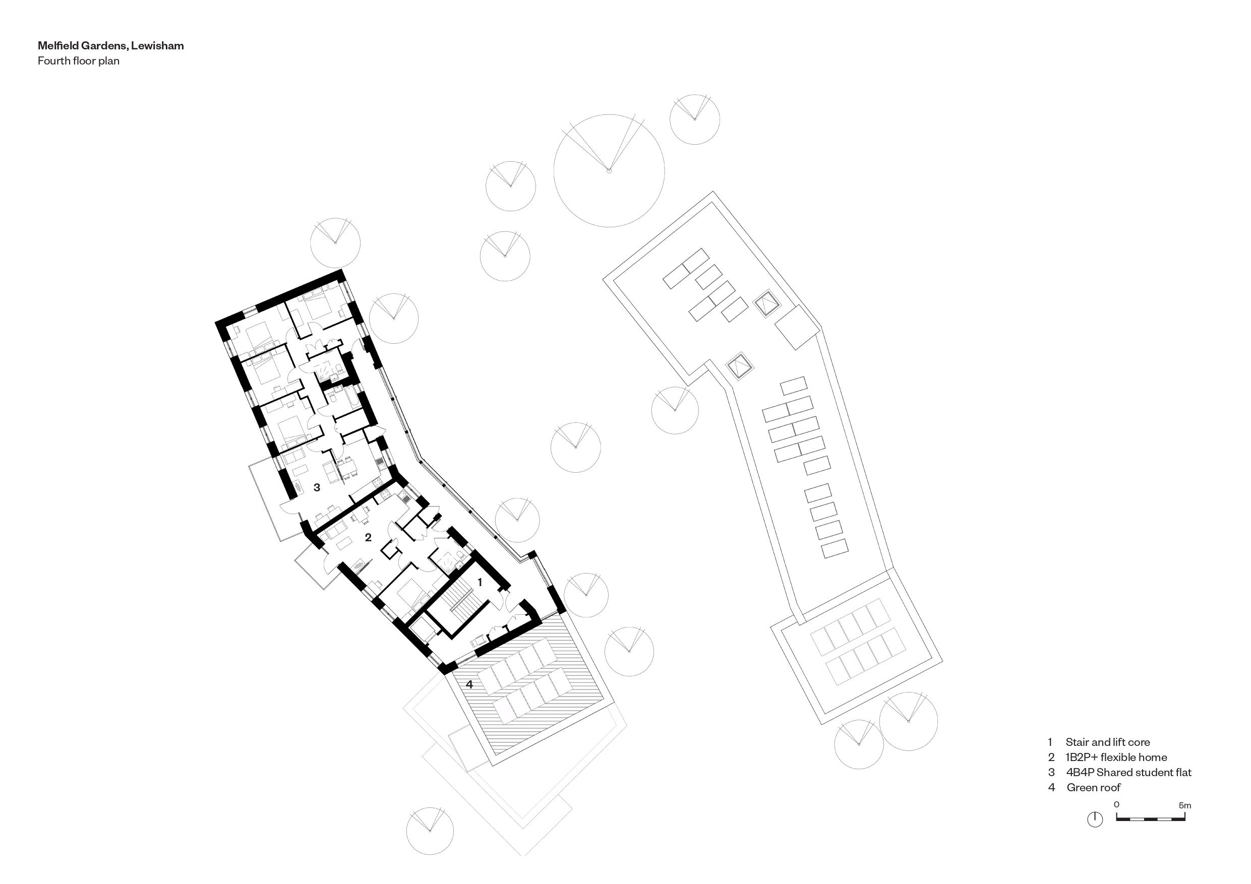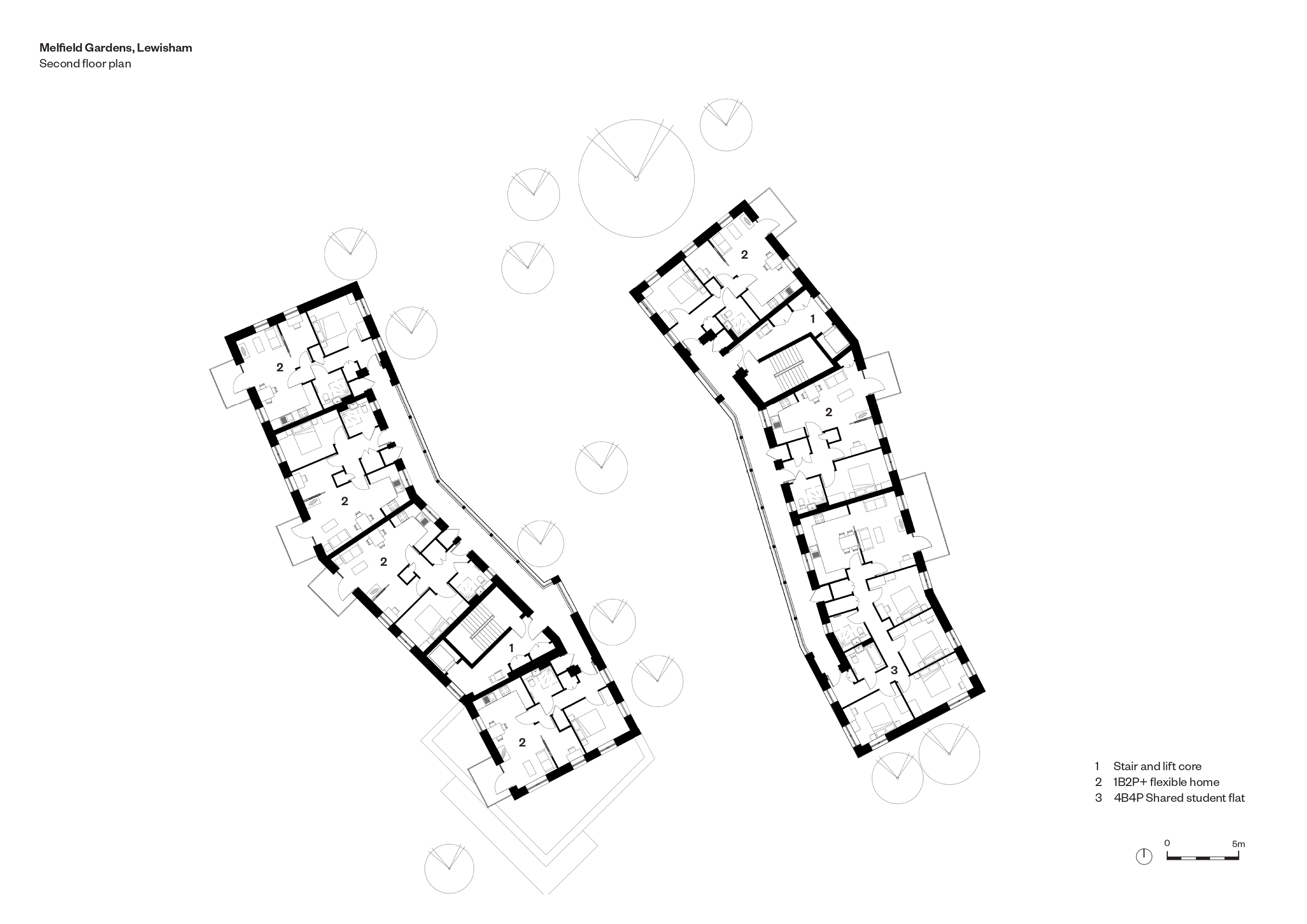 In Lewisham, Southeast London, Levitt Bernstein has completed Melfield Gardens, a compact residential development that brings together homes for people over 55 and student accommodation within a single, fully affordable scheme. Commissioned by Phoenix Community Housing, the project proposes intergenerational living not as a social programme layered onto housing, but as a condition shaped through layout, shared space and everyday circulation.
