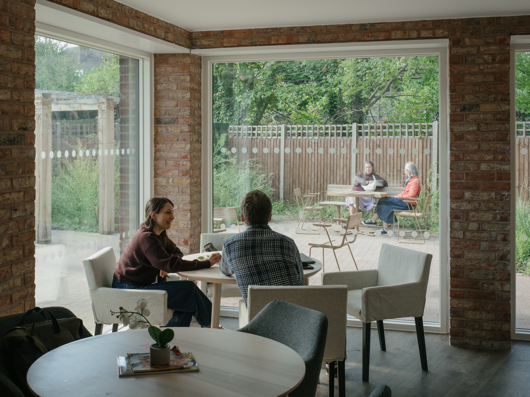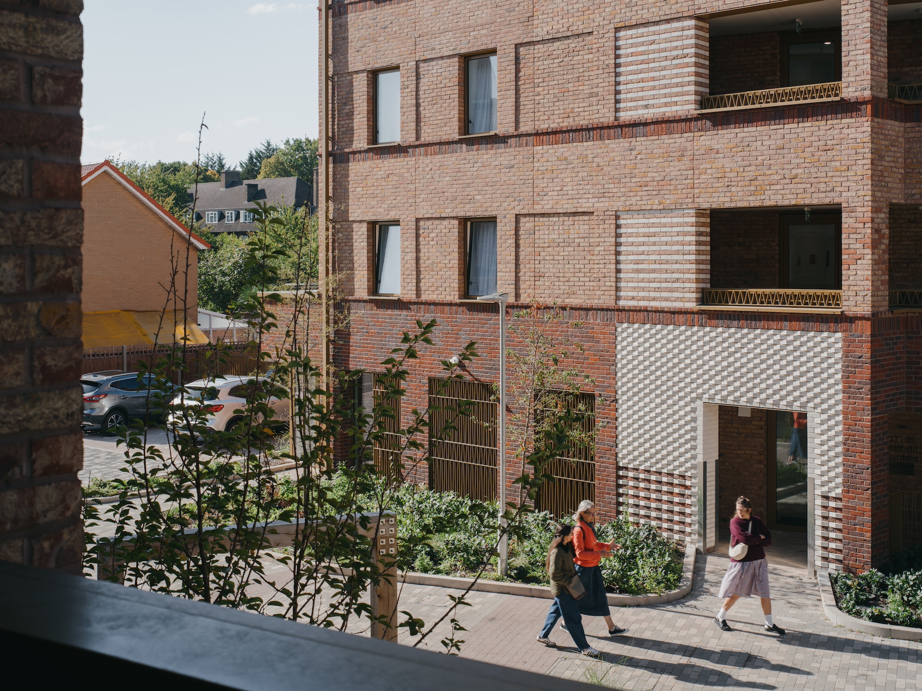 The development comprises 30 independent homes for older residents alongside two four-bedroom student apartments occupied by students from Goldsmiths, University of London. Rather than separating these uses, Levitt Bernstein has arranged them within two closely related buildings, linked by shared external routes and communal spaces that encourage casual encounter and mutual awareness.