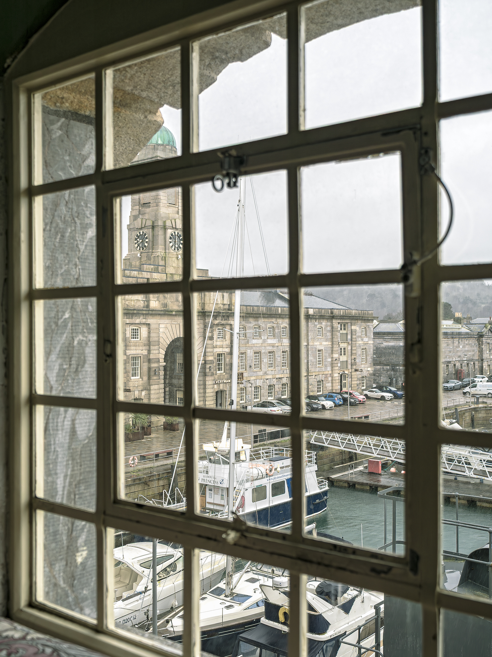 Right: View looking out over the historic dockyard. All the apartments are naturally ventilated, and the thick stone walls provide excellent thermal mass.