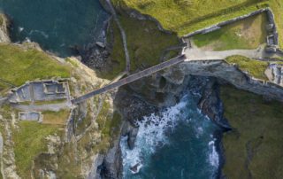 Aerial view of the bridge deck. The coastal site, associated with the legend of King Arthur, is a Scheduled Ancient Monument and protected by Area of Outstanding Natural Beauty, Special Area of Conservation, Site of Special Scientific Interest, Marine Conservation Zone and Heritage Coast designations (ph: David Levene).