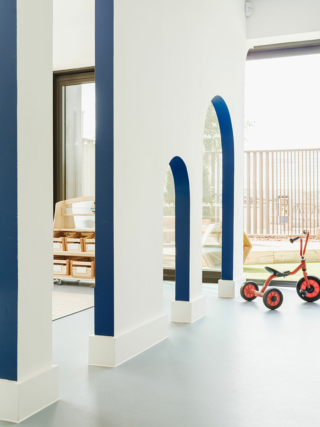 Views out and through the building too have been given careful attention, too: an expansive double set of six bifold doors open up onto a 145 square metre garden that looks out over the River Thames; while archways create thresholds within the nursery to accentuate perspective views through and demarcate areas within the space.
