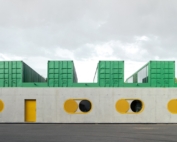 Impepinable Studio’s workplace for a seed production company in rural Cuenca, Spain, uses repurposed shipping containers and locally sourced construction methods to create a flexible, light-filled environment that bridges agricultural production and technological innovation.