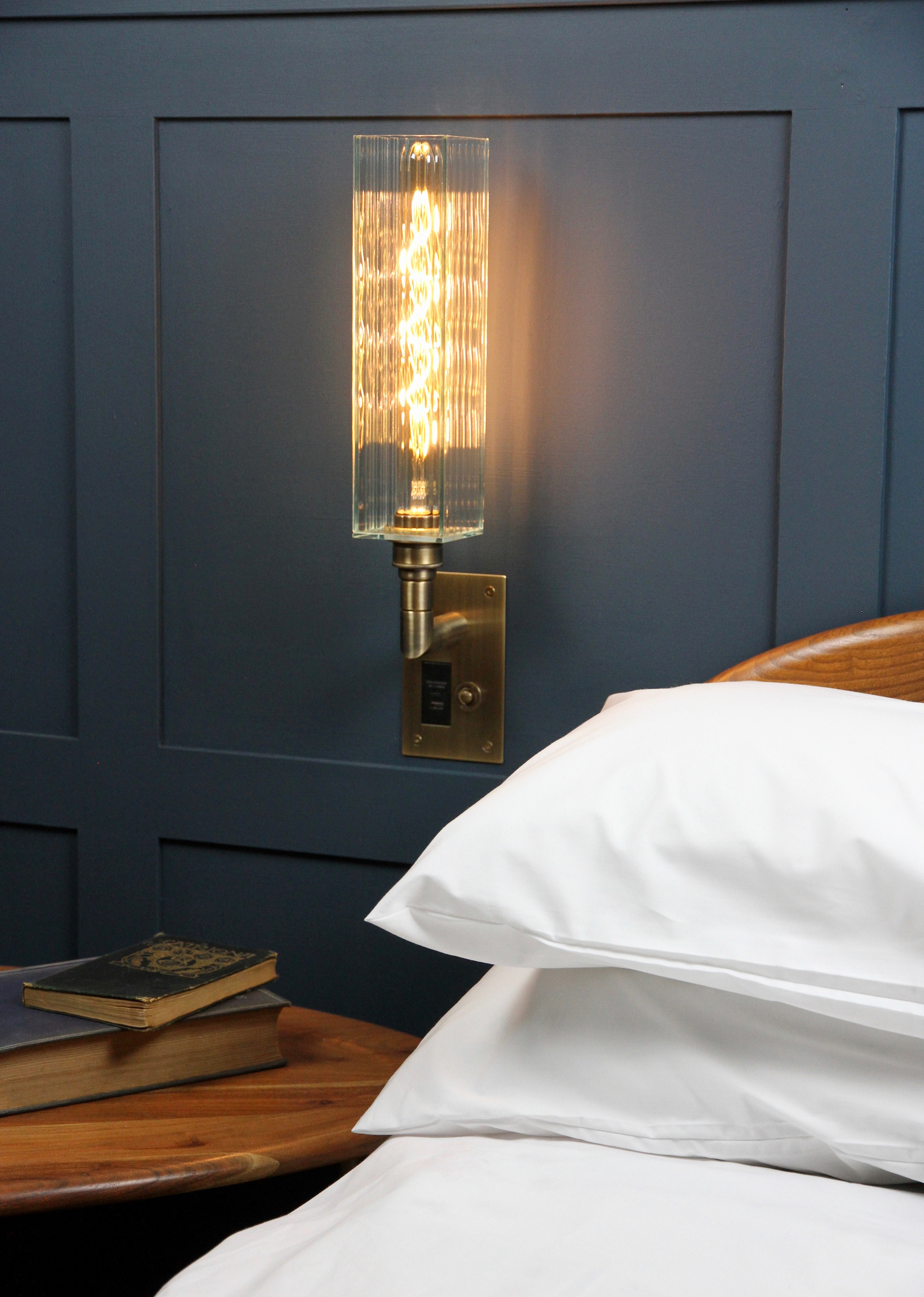 Winner of the 2024 Lighting category in the SBID International Design Awards, the Focus SB Ambassador Wall Light range features elegant long thin rectangular clear, smoked and reeded glass shades, with each piece paired with striking Tubular Gold Flex LED filament dimmable lamps. The bespoke bedside light panel designed in Ambassador Square is also available in the Ambassador Classic faceplate style.