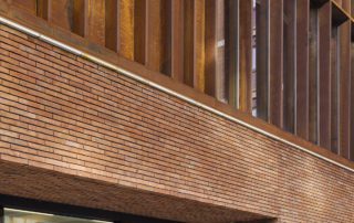 “A restrained palette of materials was selected to complement the existing building, embody their own classicism and avoid being vogueish”, says the architect. The plinth is made from bespoke red Roman bricks with deeply raked dark grey mortar joints. The main rehearsal space is expressed externally as a weathering steel box with vertical fins – an allusion to the water tanks of industrial buildings, and hence to Manchester’s role in the Industrial Revolution. Structural glazing is used to articulate junctions between the new and existing buildings, while bringing daylight deep into the plan.