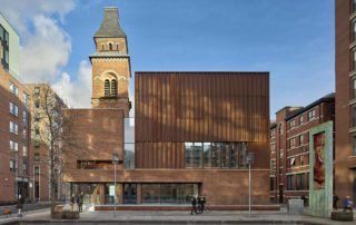 Designed by Stephenson Studio, the Oglesby Centre is an extension to the grade-II-listed St Peter’s Church, Ancoats, which was deconsecrated in 2013 to provide rehearsal space for Manchester’s Hallé Orchestra and Choir. The new facility provides spaces for rehearsal, performance and education, as well as a public cafe.