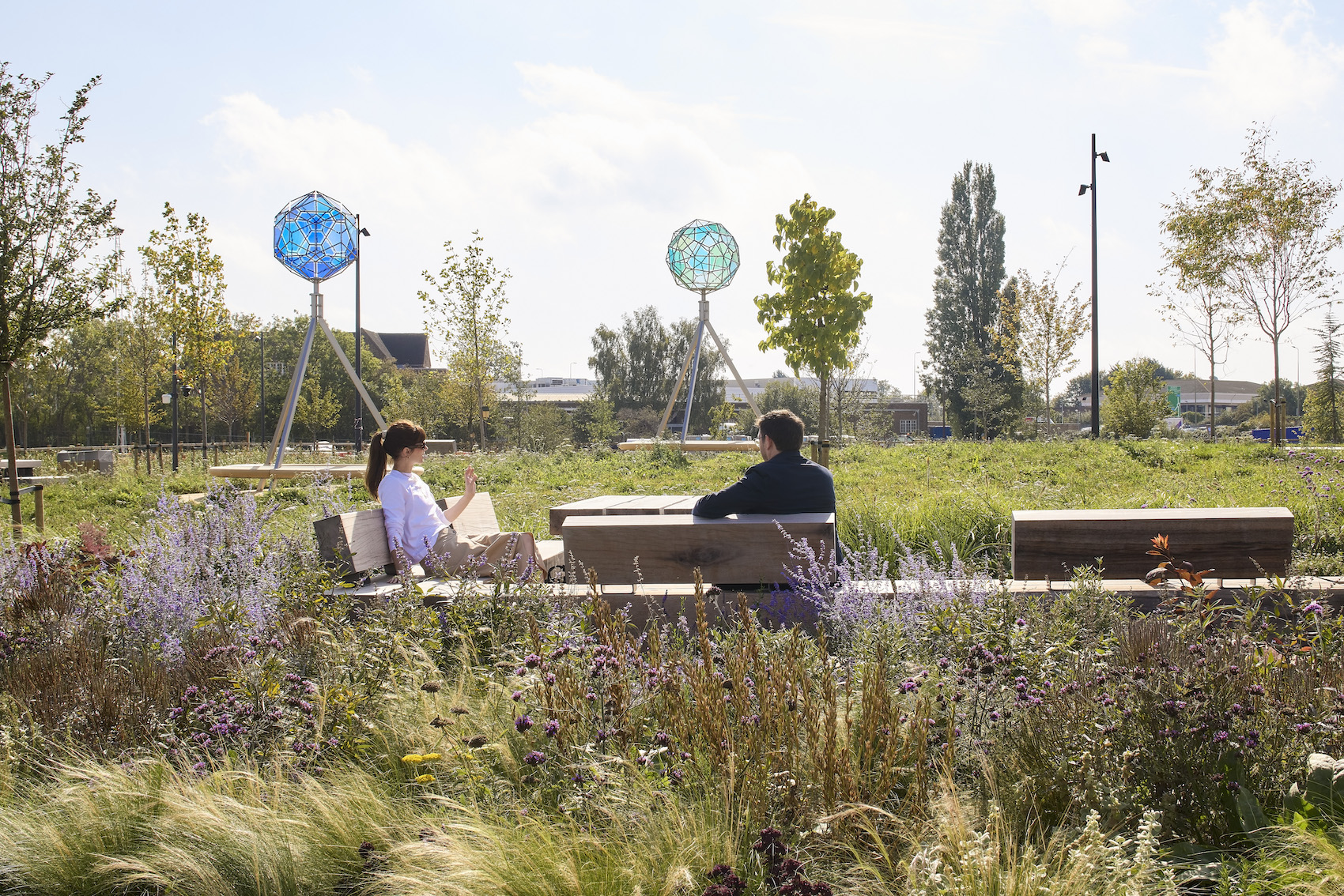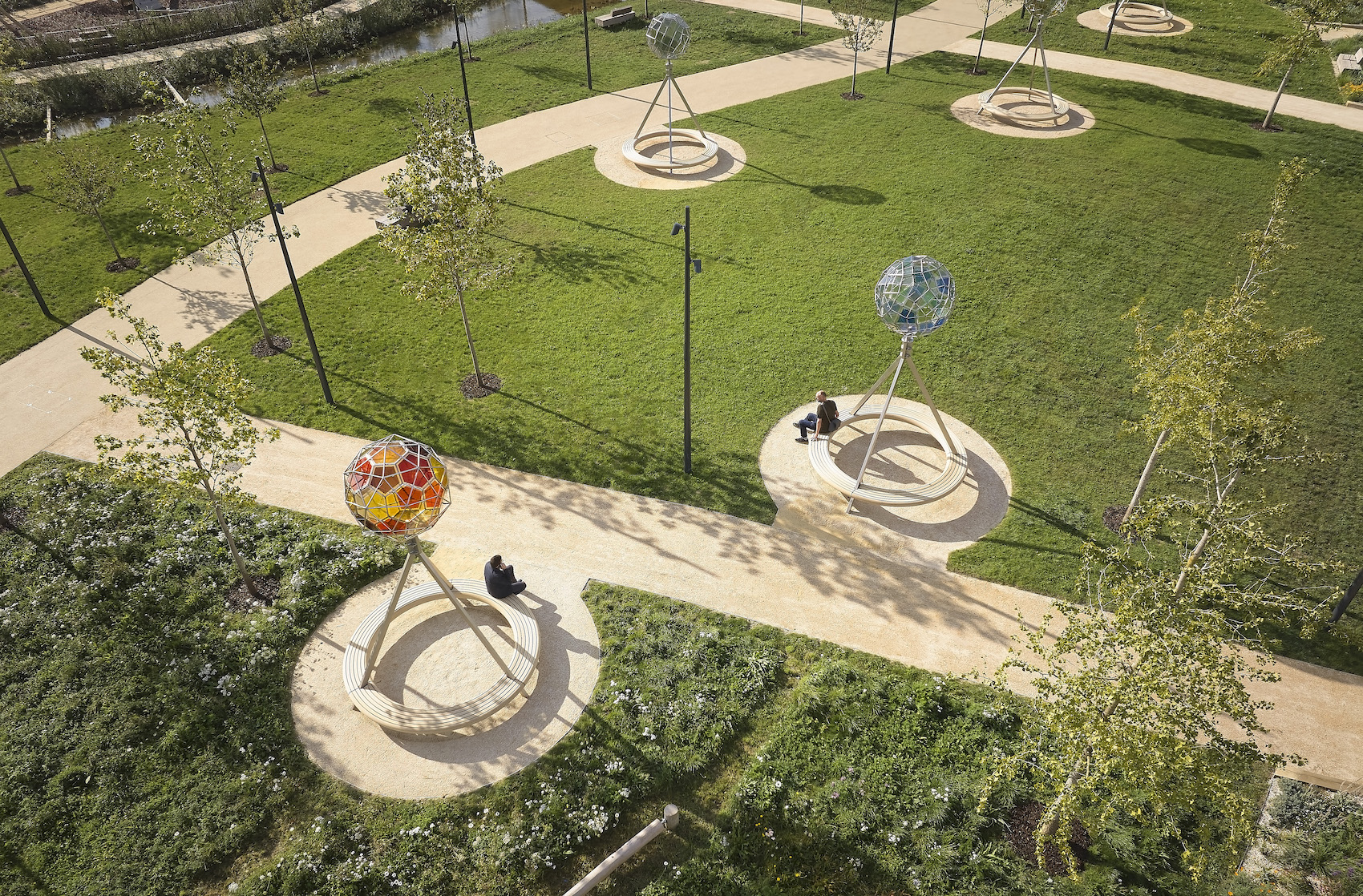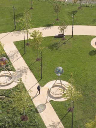 A key feature of the public realm is Your planetary assembly, the first permanent public artwork in the UK by Olafur Eliasson. Comprising eight polyhedral glass sculptures inspired by astronomical models, the work sits in dialogue with Oxford’s long tradition of scientific inquiry and knowledge exchange.