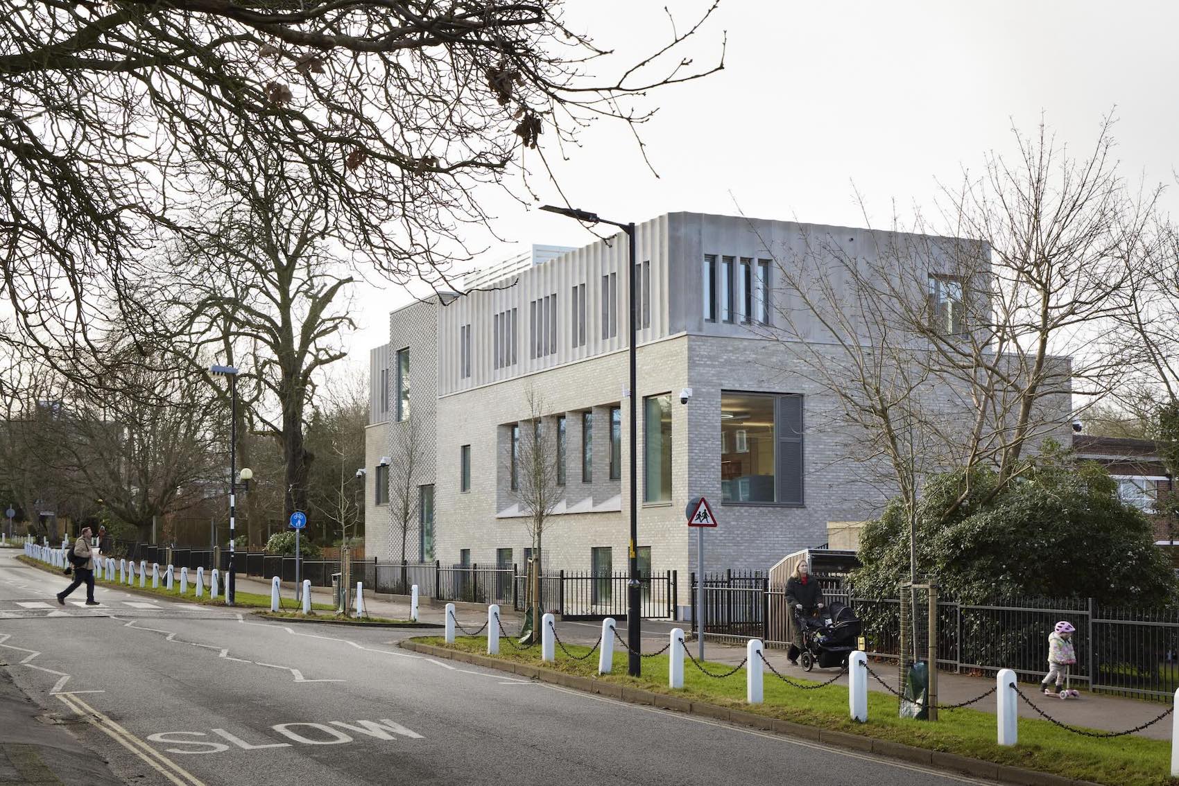 The top floor of the three-storey building is faced in a tightly scalloped 15mm thick glass reinforced concrete (GRC) cladding matching the tone of the brick and successfully breaking down the scale of the building, improving its proportions in elevation.