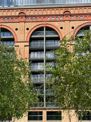 Working across two boroughs, Hammersmith & Fulham and Kensington & Chelsea, Farrells’ design reinstates the original arched windows and bullseye openings, reintroduces terracotta friezes and restores 80 per cent of the existing brickwork. Internally, the former turbine hall has become a dramatic atrium — more than 100 metres long and 20 metres wide — lined by dual-aspect apartments and overlooked by retained steelwork from the original coal hoppers.