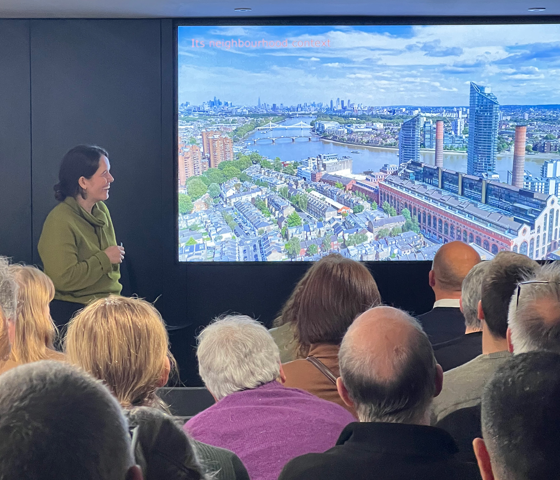 Shevaughn Rieck discussing how Powerhouse slotted into the wider Lots Road masterplan. (Credit: Jason Sayer / Architecture Today)
