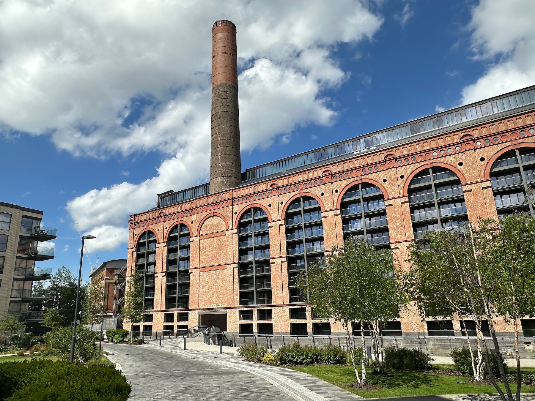 Working across two boroughs, Hammersmith & Fulham and Kensington & Chelsea, Farrells’ design reinstates the original arched windows and bullseye openings, reintroduces terracotta friezes and restores 80 per cent of the existing brickwork. Internally, the former turbine hall has become a dramatic atrium — more than 100 metres long and 20 metres wide — lined by dual-aspect apartments and overlooked by retained steelwork from the original coal hoppers.