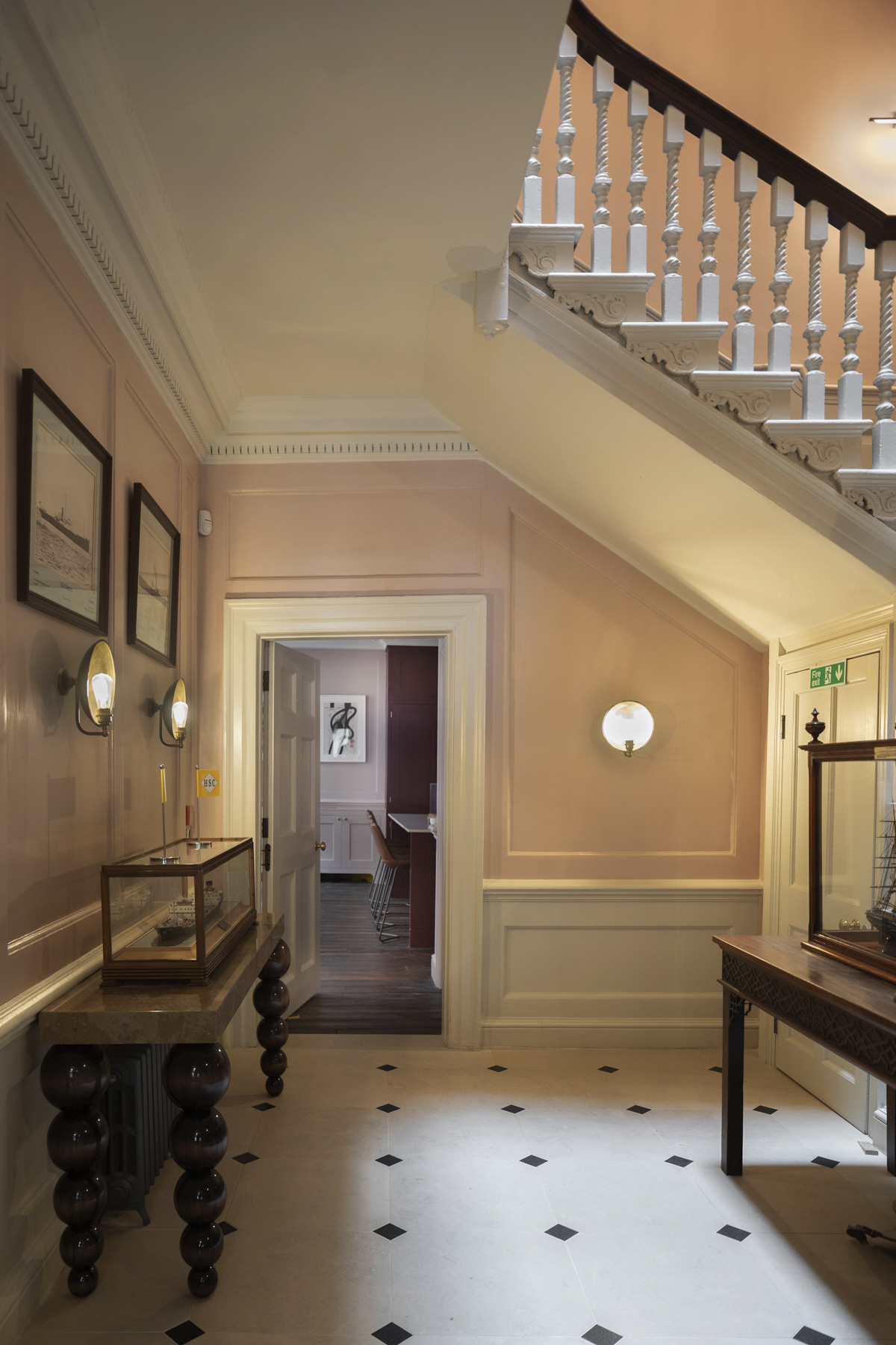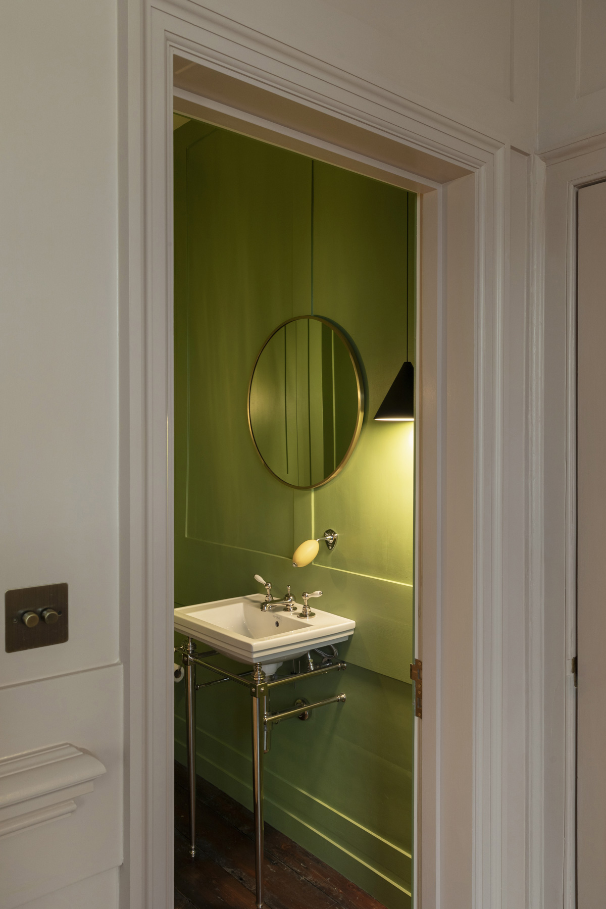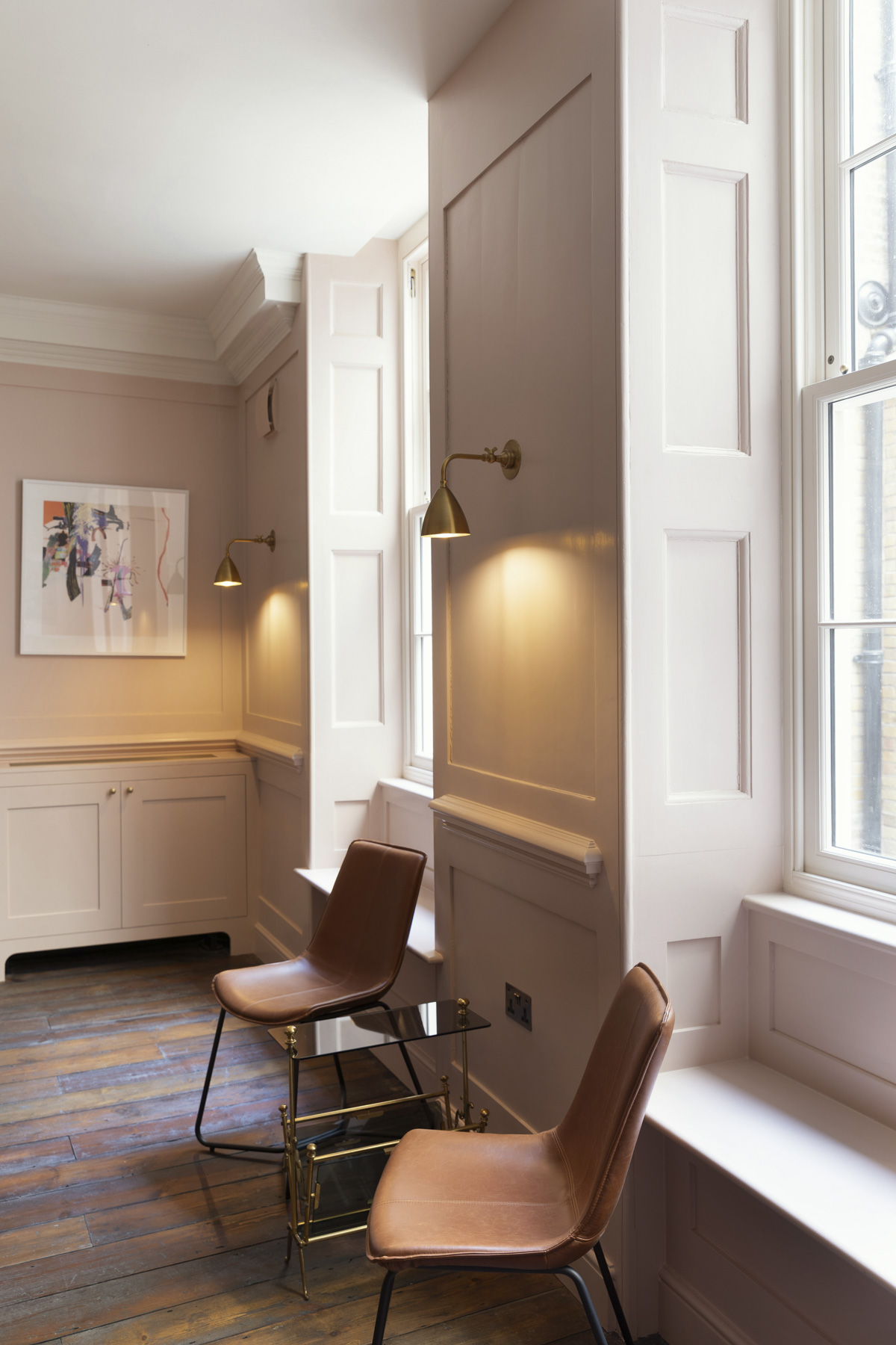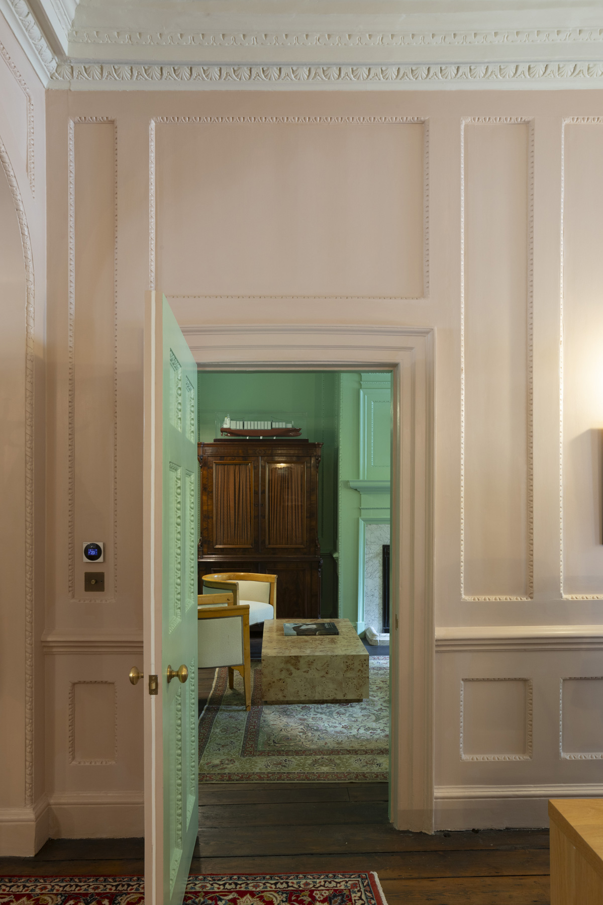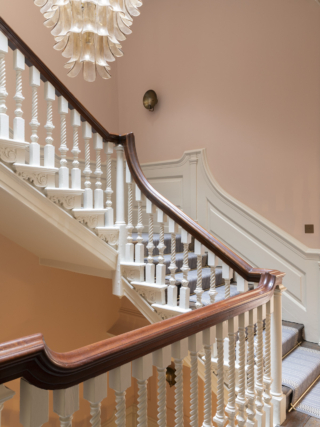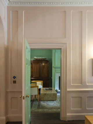 Artworks from the client’s collection have been displayed throughout, with original panelling being painted in tones that blend traditional Georgian hues with more contemporary shades, from sage greens to muted rose.
