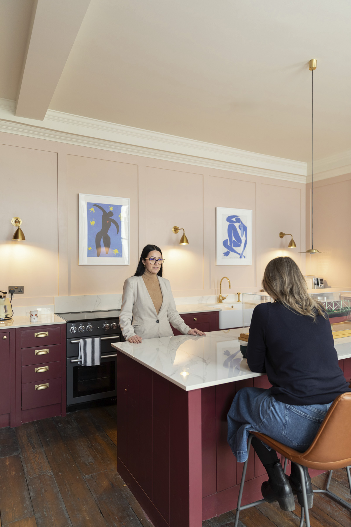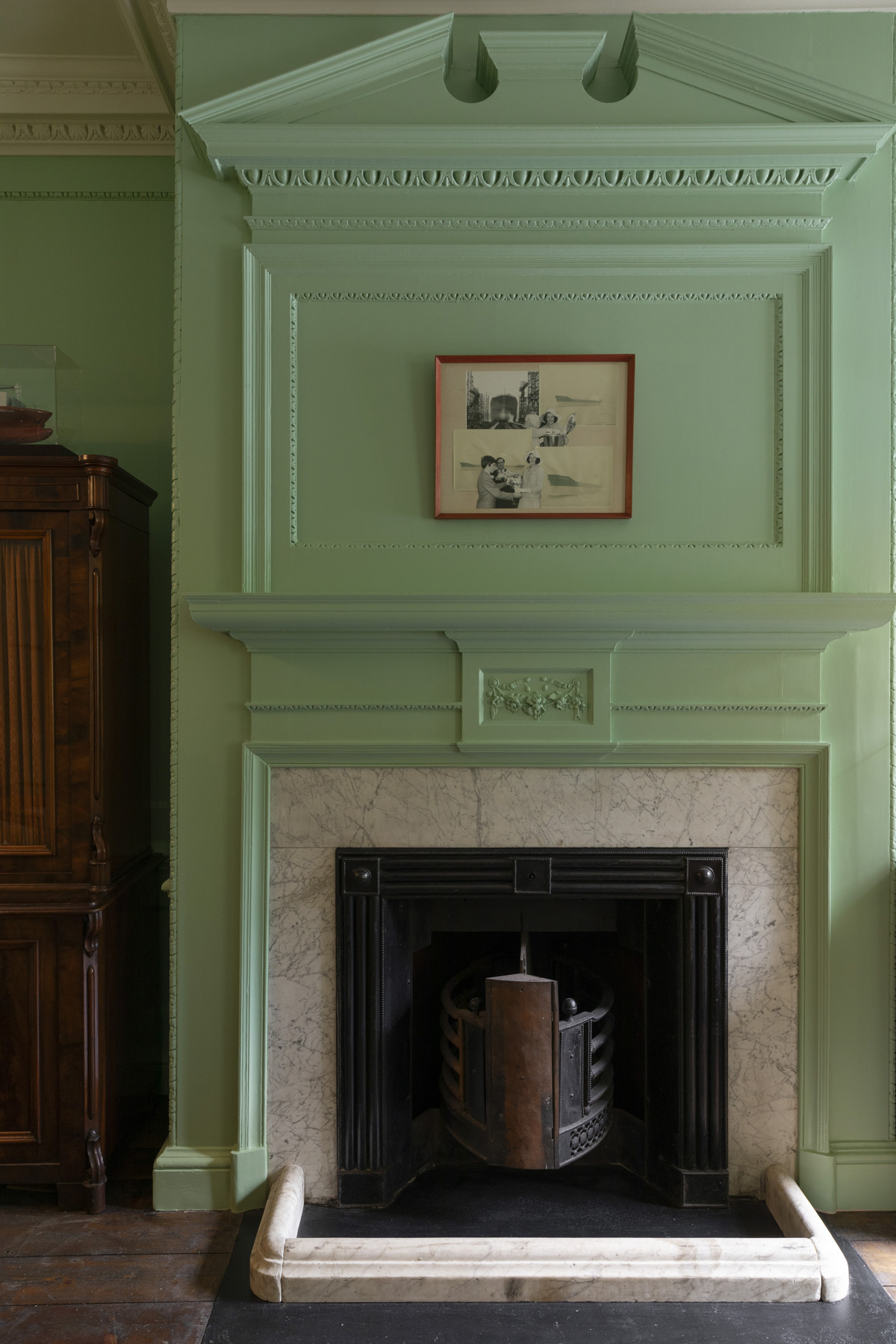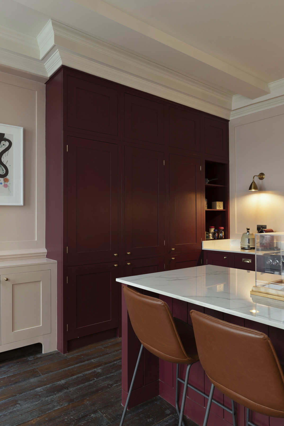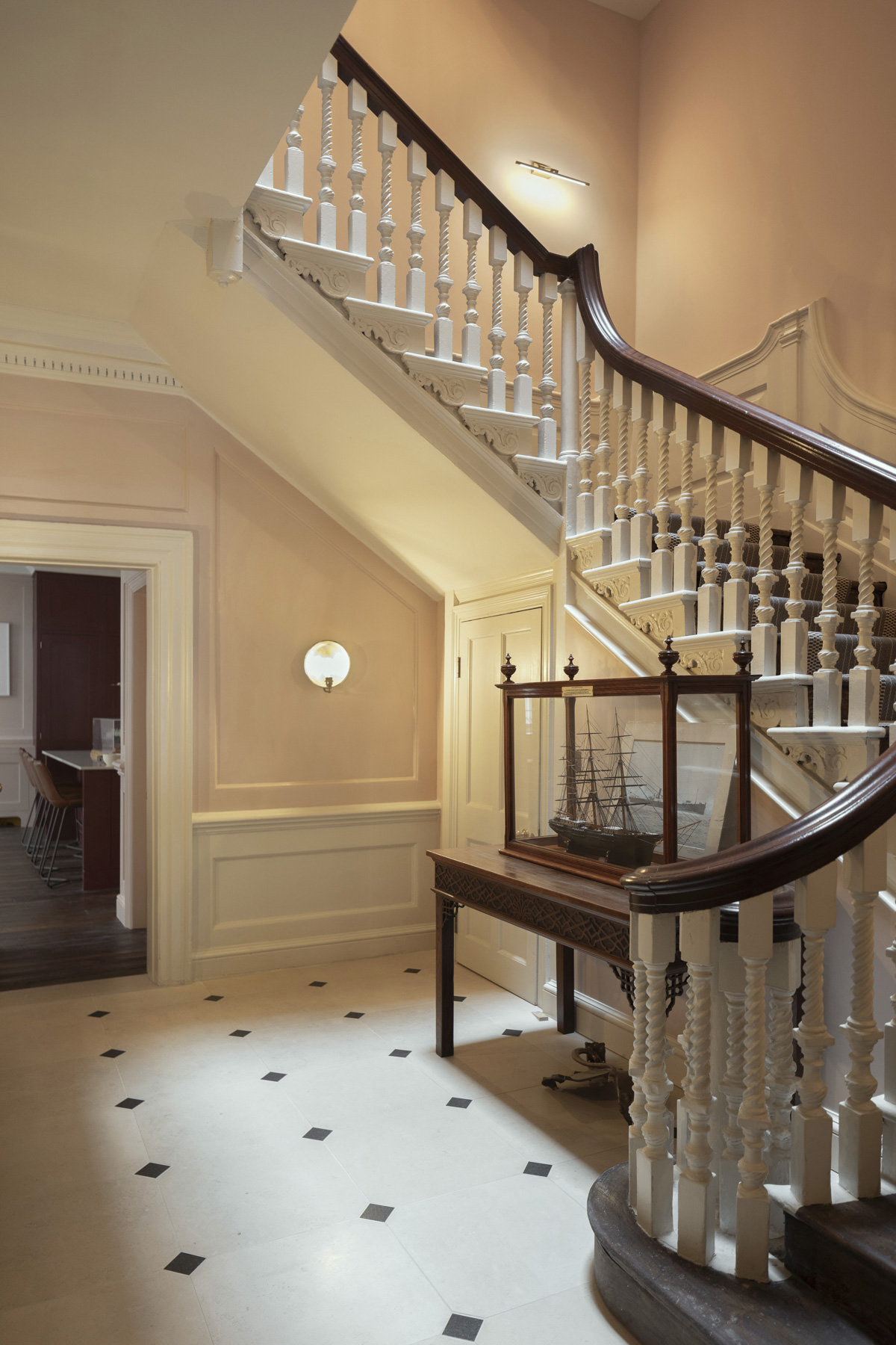 Artworks from the client’s collection have been displayed throughout, with original panelling being painted in tones that blend traditional Georgian hues with more contemporary shades, from sage greens to muted rose.